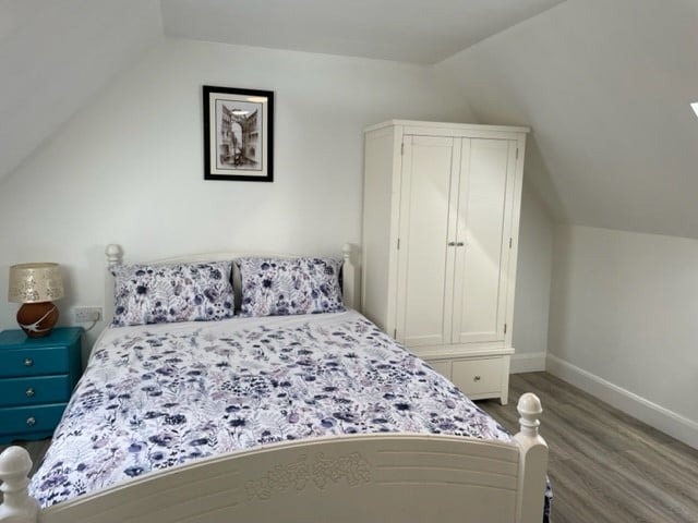 Una vez un granero estable y de heno, ahora es un súper de dos dormitorios, dos baños en dos plantas, situado en cinco acres de paz y tranquilidad. Un dormitorio tiene una cama doble tamaño king, el otro tiene camas individuales. Ambos tienen sus propios baños. No es realmente adecuado para niños pequeños, ya que las habitaciones están en diferentes pisos. La casa tiene su propio jardín en la terraza y sus propios espacios de estacionamiento para tres autos. Estancia mínima de dos noches.