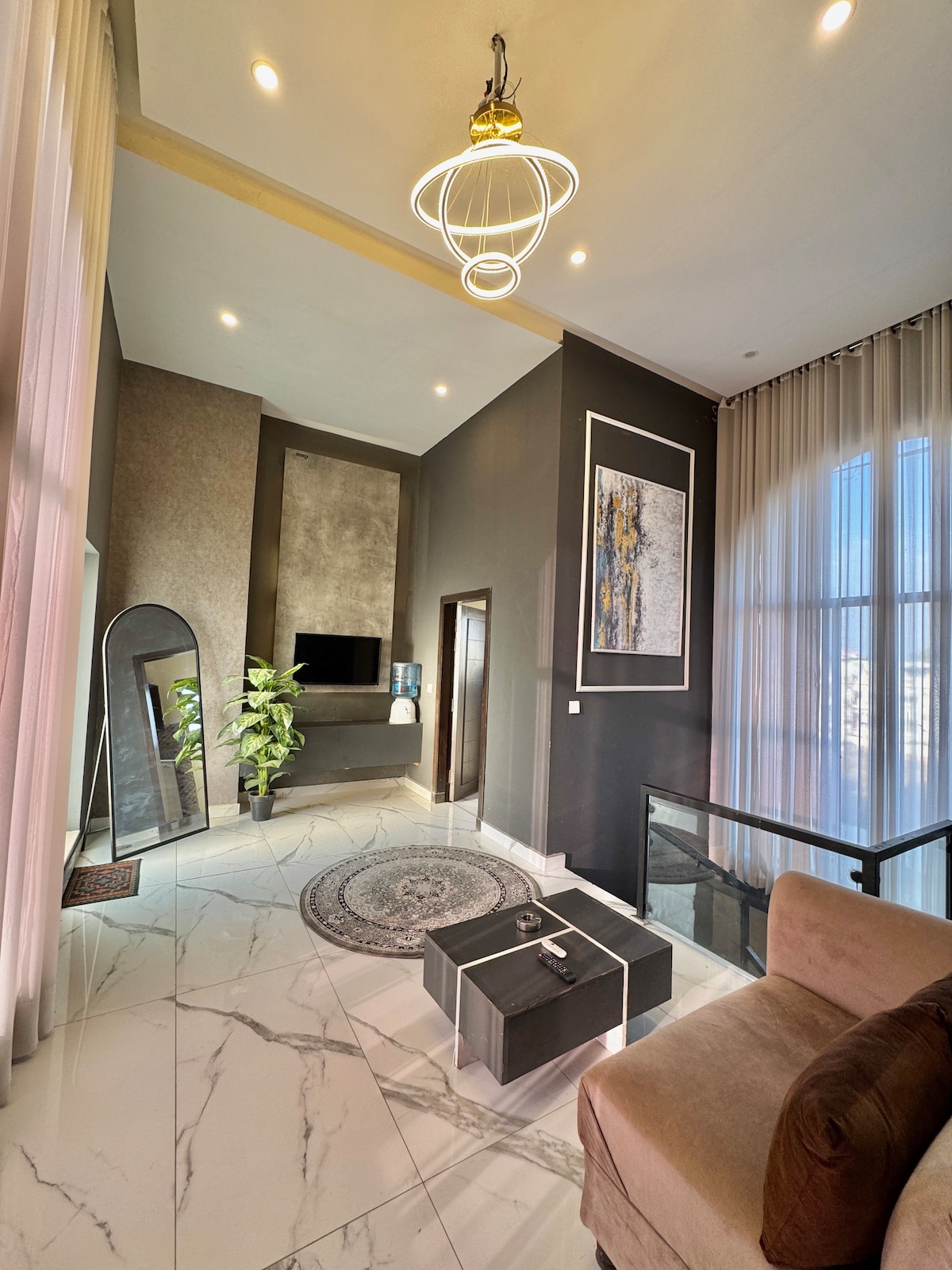 Nuestro penthouse BHK Orbit en DHA Fase 5 es donde la elegancia urbana se encuentra con la frescura celestial. Piensa: una pared con una luna brillante para esos selfies nocturnos y una obra de arte atrevida con dólares apilados que grita “energía de personaje principal” Despiértate con vistas al parque desde tu columpio en el balcón privado, disfruta de tus favoritos en el televisor inteligente 4K de 50 pulgadas o cocina algo estético en la cocina de diseño completamente cargada. ¿Los interiores? Abstractos, elegantes y hechos para el feed. Además, estás justo al lado de los restaurantes más populares de Lahore.