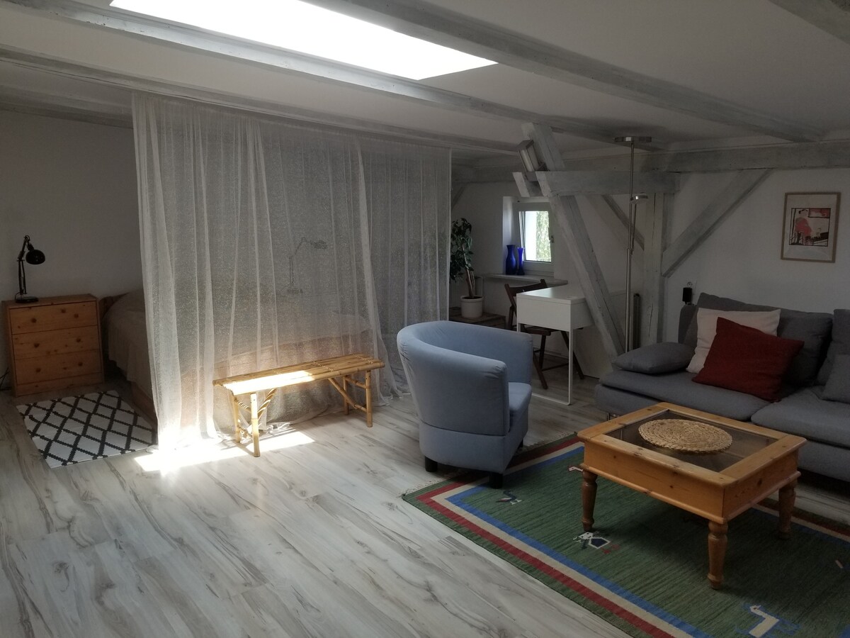 Nuestro acogedor apartamento está situado en un edificio de apartamentos revitalizado en el tercer piso. Ha sido completamente renovado, por lo que el apartamento tiene todo lo que los huéspedes necesitan. Además del amplio interior del salón, hay un pasillo con un armario empotrado. Además, hay una cocina bien equipada. Aquí también encontrarás el equipo necesario. El suelo de madera y el balcón con barandilla forjada merecen una mención especial. Las ventanas tienen persianas. Aparcamiento de pago solo de 8 a 17, los fines de semana es gratuito.