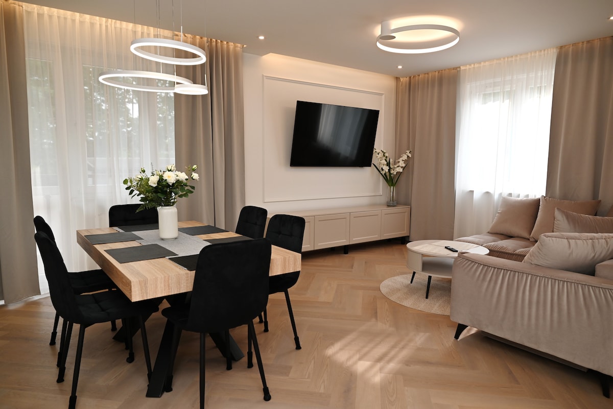 El apartamento La Maison se encuentra en una excelente ubicación en el centro de Bydgoszcz, en la prestigiosa calle Gimnazjalna, junto al parque. Casimir el Grande. El encantador parque con Fontana Potop conecta con la calle Gdańska, que conduce hasta el casco antiguo. Es único que en el centro de la ciudad hay un lugar tranquilo y silencioso para relajarse, lejos del ruido de la ciudad. Los ciudadanos de Bydgoszcz llaman a la calle Gimnazjalna, el pequeño Berlín, debido a su ambiente.