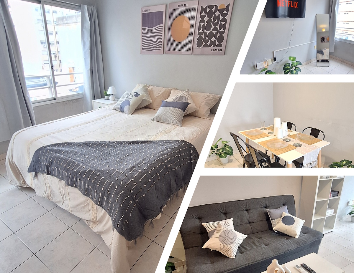 Moderno apartamento en una de las zonas más vibrantes de Montevideo. Súper luminoso, grandes ventanales de doble vidrio que garantizan tranquilidad y confort. Cocina equipada (heladera, horno, microondas, vajilla y utensilios), living-comedor con Smart TV de 43". Espacio de home office con wifi. La ubicación es inmejorable: a pasos del Parque Rodó y de la Rambla, rodeado de servicios y transporte en la puerta. Perfecto para disfrutar la ciudad con comodidad y estilo.