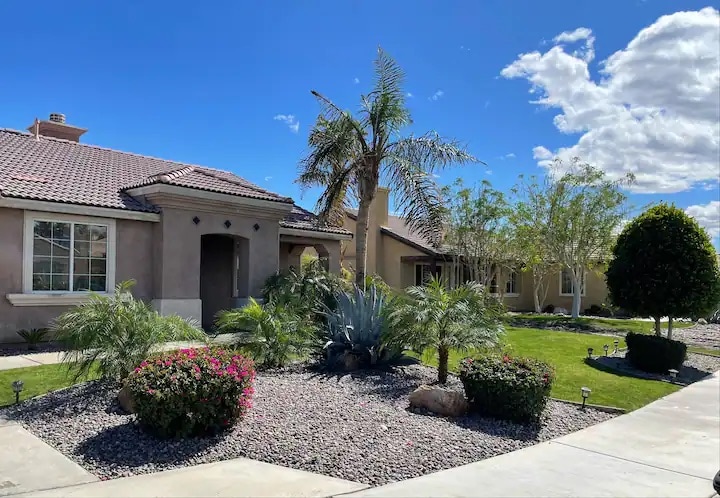 Una lujosa casa de Indio que ofrece la base perfecta para descubrir el desierto de California. Con una piscina privada de agua salada, un jacuzzi con chorros, un pozo para encender una hoguera, una cocina grande, wifi de alta velocidad y televisores inteligentes, este es un lugar ideal para familias, asistentes al Coachella y golfistas que buscan explorar increíbles campos de golf cercanos. A 7 minutos en coche del campo de golf Rancho La Quinta. A 8 minutos en coche del Empire Polo Club. A 9 minutos en coche de Coachella. ¡Experimenta Indio con nosotros y obtén más información a continuación!