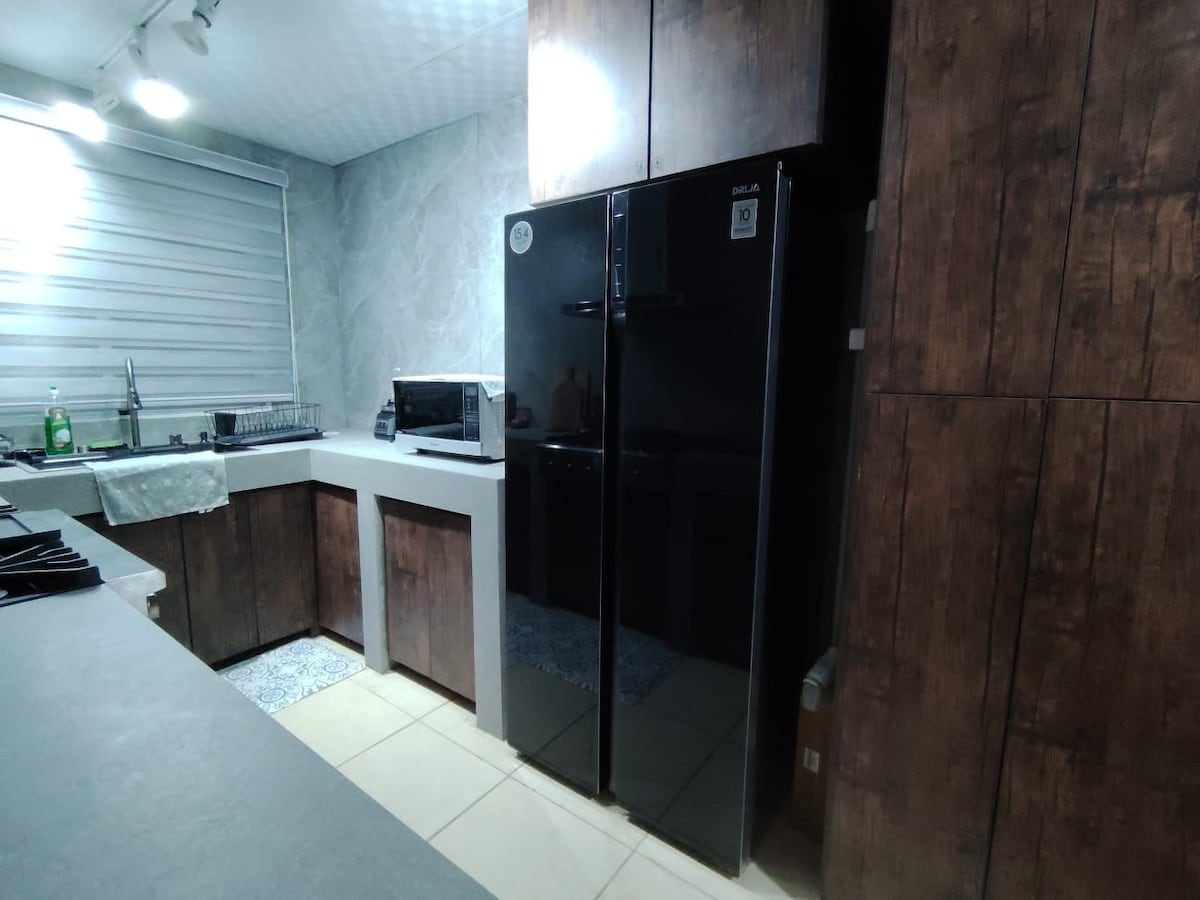 Suite con entrada independiente: estacionamiento techado, cama doble, baño sanitario, cocineta y escritorio. Tu espacio personal en el corazón de David. Cuenta con aire acondicionado tipo split, abanico de techo, TV con acceso a netflix, internet wifi gratis, cortinas black out, tanque de reserva de agua, agua caliente, cocineta equipada con estufa eléctrica, refrigerador, cafetera, microondas y utensilios básicos. No cuenta con lavandería, generador eléctrico y aislamiento acústico.