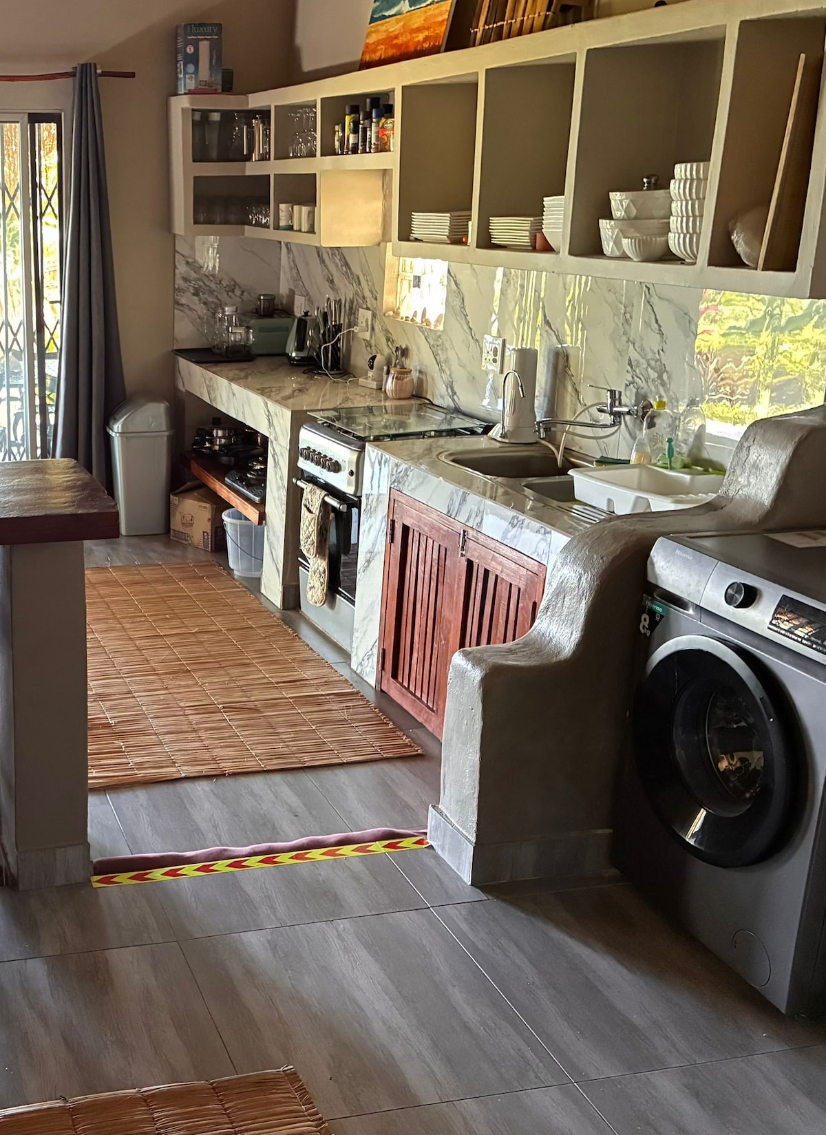 Una bonita casa amueblada con 3 dormitorios, sala de estar y 2 baños con ducha. La casa está a 500 metros de la playa. Para aquellos que solo quieran reservar una habitación, los precios son los siguientes: Casa entera 108 USD / día Dormitorio principal 30 USD / Día 1 Habitación Individual 20 USD / Día No dudes en escuchar lo que estás buscando, y cambiaremos el precio según tus deseos. Los guardias que proporcionan la casa viven en la casa vecina y siempre están disponibles.