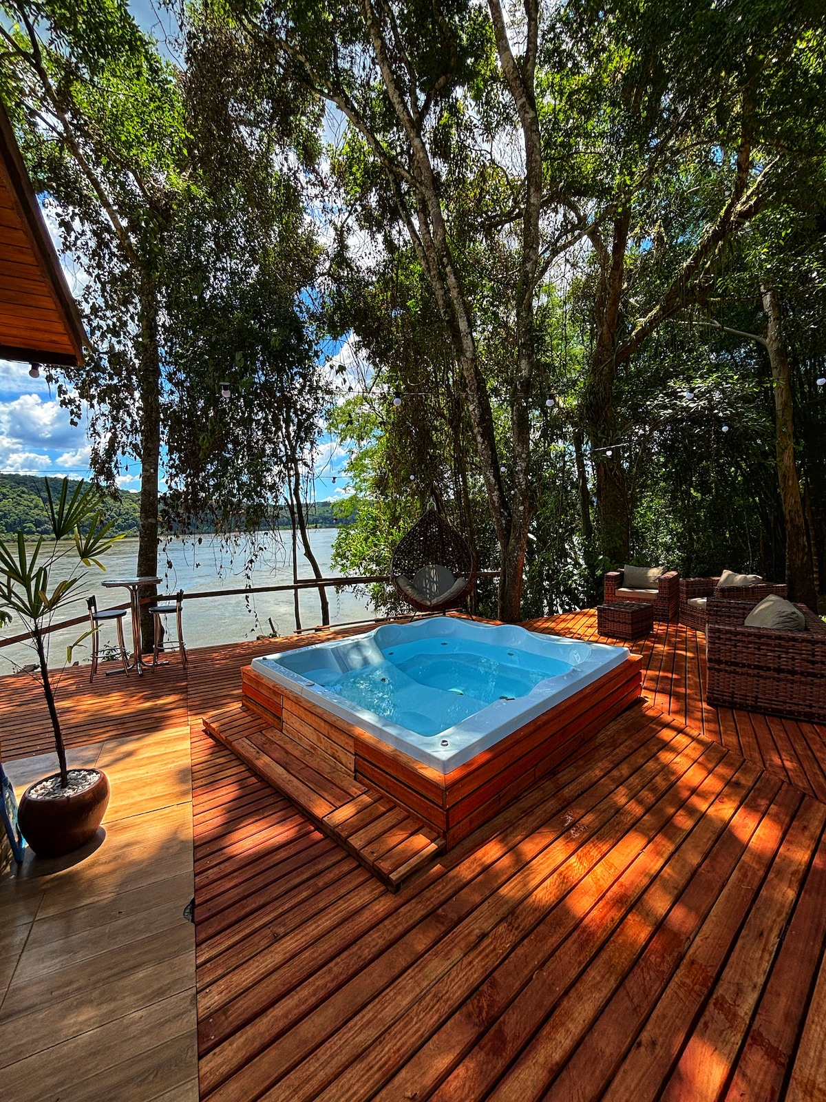 Relájate en este espacio tranquilo y con estilo. Contempla la belleza del río Uruguay, en la frontera con Argentina, en un espacio confortable, diseñado para momentos únicos. Disfruta del hidromasaje, contempla la naturaleza, charla y canta alrededor de la hoguera. ¡Vive esta experiencia! Importante: el alojamiento está destinado a dos adultos. Debido a la temática y características del espacio, no se permite el alojamiento de niños y adolescentes.