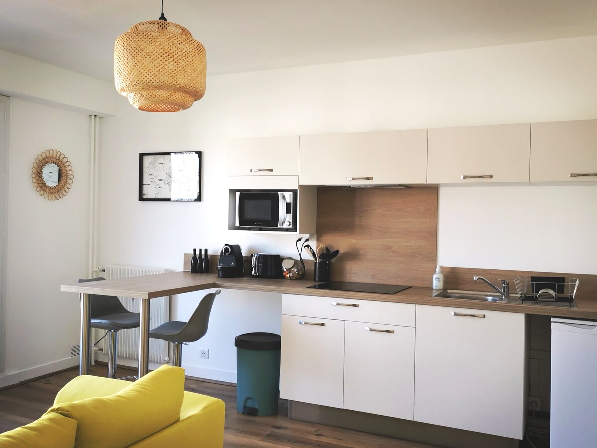 Alquile con total tranquilidad este apartamento situado en la planta baja de una casa, ubicada en Limoges a 5 minutos a pie de la estación de Bénédictins. Venga a disfrutar de la comodidad de este elegante estudio tipo 1 bis amueblado con su dormitorio separado y, la guinda del pastel, le reservamos el placer de comer en porcelana de Limoges🇫🇷. Se le ofrecerá una cesta de degustación de Limousin a su llegada.