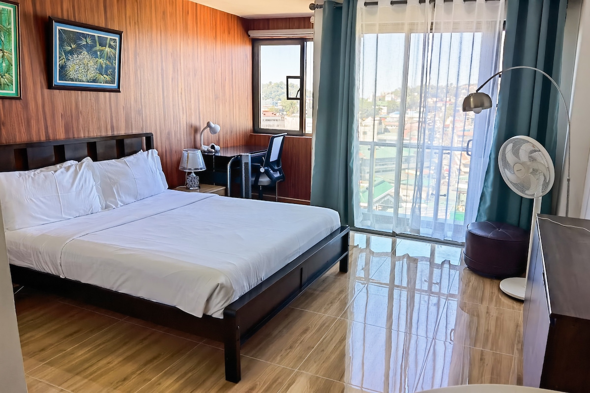 Un espacioso estudio de 29 metros cuadrados con capacidad para 4 adultos cómodamente. Con cocina, conexión a internet, Netflix y ducha fría y caliente. Se ubica en el corazón de la ciudad de Baguio. A poca distancia a pie del mercado de la ciudad, Burnham Park, Session Rd, supermercados, restaurantes, hospitales y centros comerciales. Fácilmente accesible en transporte público. Aparcamiento de pago disponible. Personal de recepción y personal de seguridad las 24 horas, los 7 días de la semana. CCTV en las zonas comunes. Limpio, seguro y protegido. Acreditado por Baguio Visita.