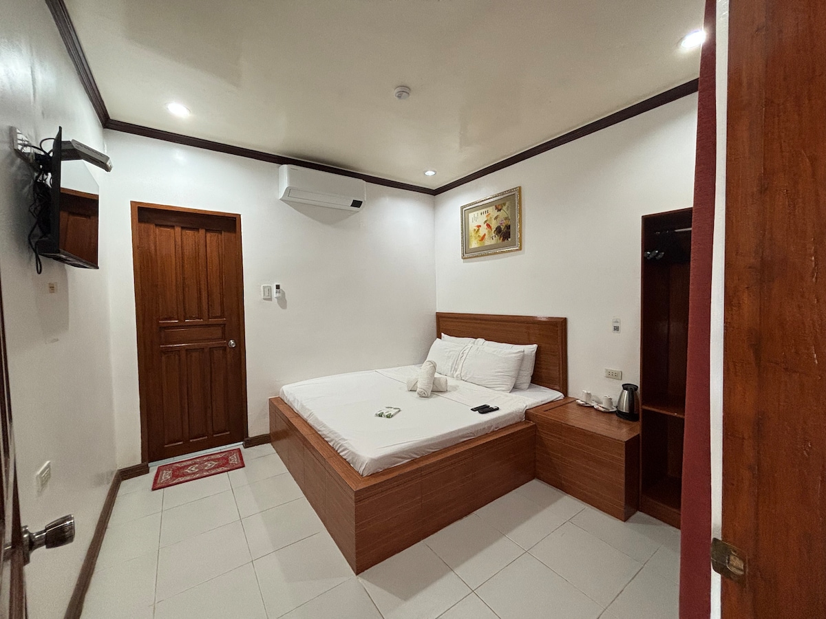 Experimenta la comodidad y el estilo sin romper el banco en Casa Marga Inn. Nuestra habitación Deluxe Queen ofrece un espacio acogedor y moderno perfecto para parejas o viajeros solitarios que quieren tanto asequibilidad como encanto. Convenientemente ubicado cerca de las playas de arena blanca de Panglao, vibrantes restaurantes y atracciones imprescindibles, disfrutarás de un fácil acceso a lo mejor de Bohol sin dejar de tener un refugio tranquilo para relajarte. Con un servicio acogedor, interiores limpios y elegantes, y un precio que te encantará,
