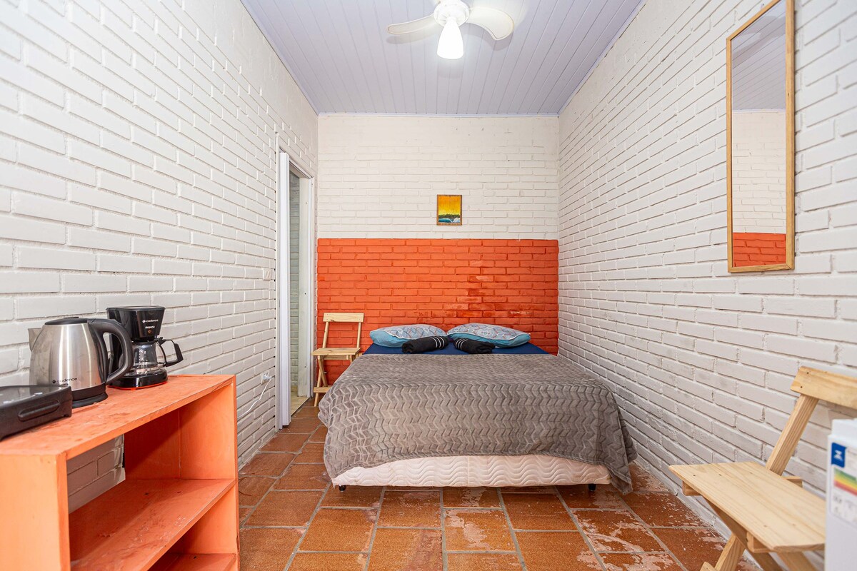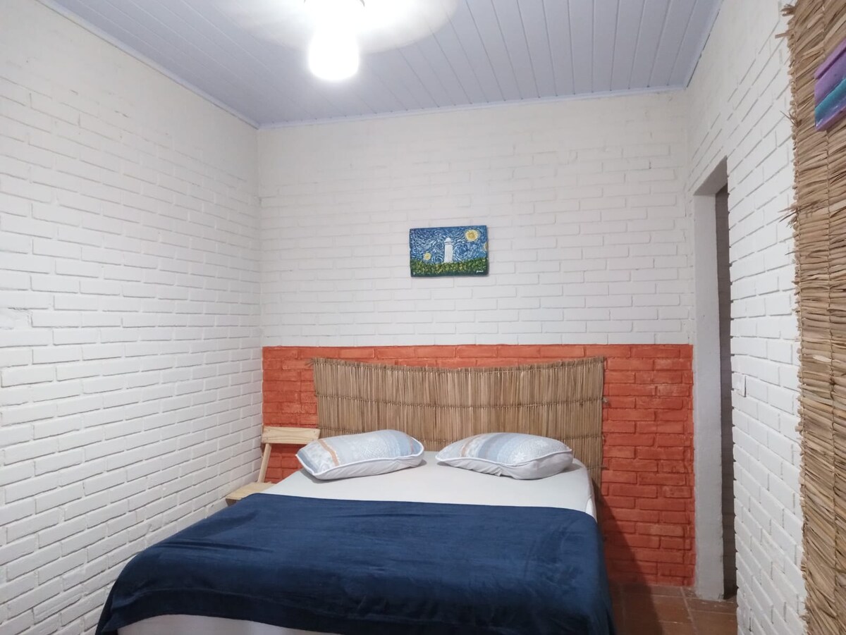 Relájate en este lugar único y silencioso. Suite exclusiva a solo dos cuadras de playa Cama de matrimonio, ventilador de techo, ducha eléctrica de 220 V, minibar, cafetera y sándwichera. ¡Entrada y salida flexibles!
