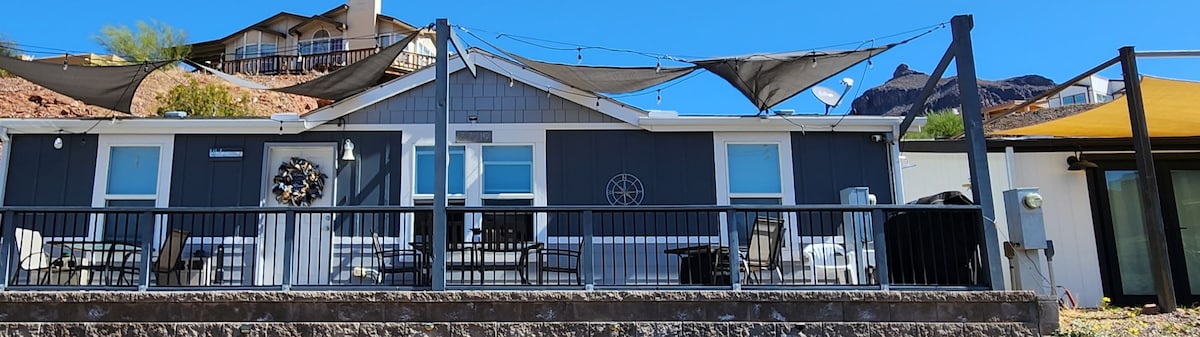 Ubicado en el centro del río Colorado en Parker AZ, nuestra casa personalizada de 3 dormitorios y 2 baños con un gran patio y terraza. 100 yardas a pie de Road Runner. Espacio exclusivo en el muelle y acceso al agua. ¡Hermosas vistas con espacio para divertirse mucho! Fácil acceso a deportes acuáticos, paseos en barco, esquí acuático, surf de remo, golf, senderismo, pesca, caza, paseos fuera de la carretera, jugar en el casino, disfrutar de compañía con otros o simplemente sentarse junto al río disfrutando de las vistas y las impresionantes puestas de sol.