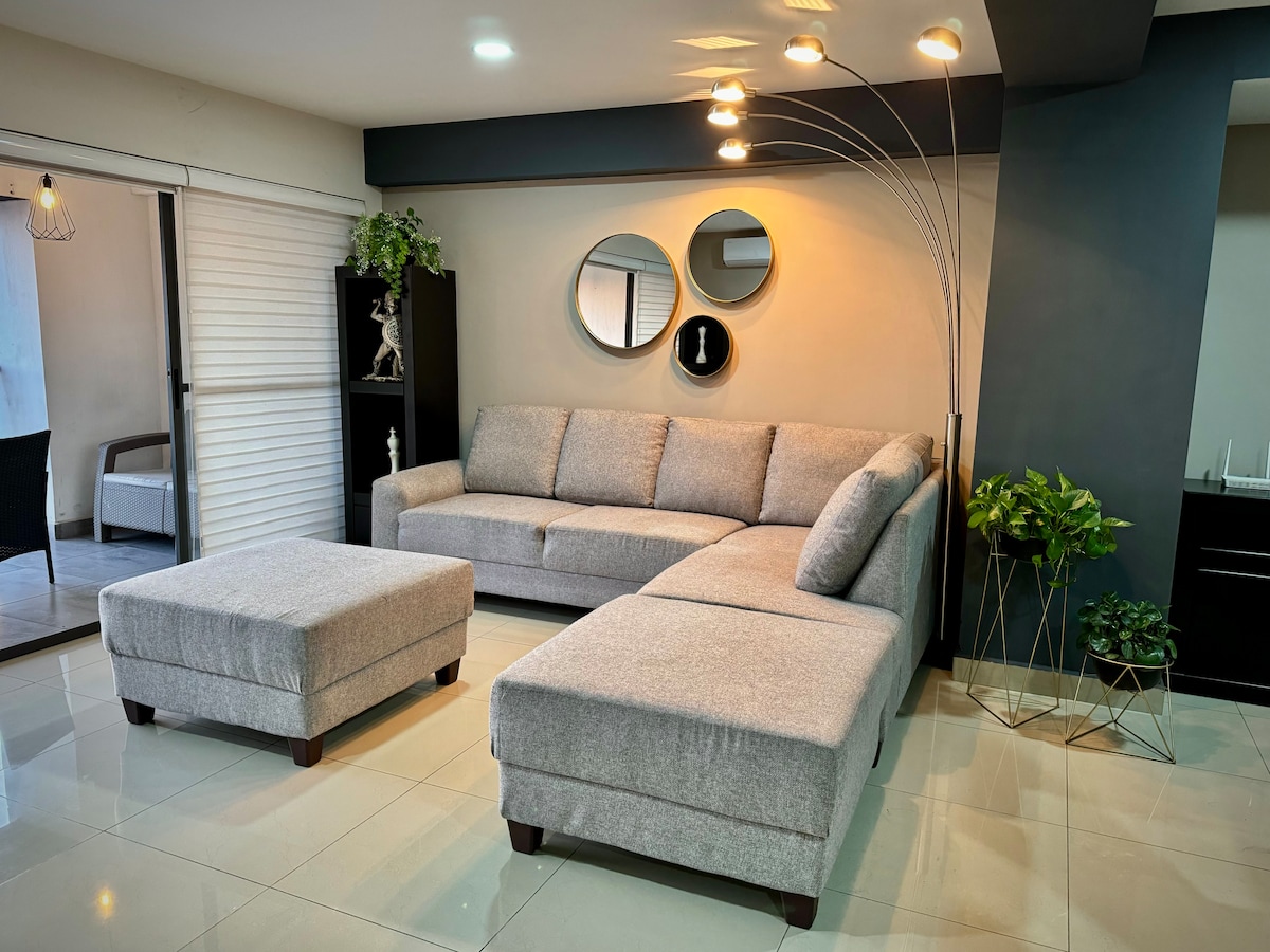 Departamento ubicado en el corazón de Guadalajara, en el piso 5, con vistas increíbles al lago del parque, consta de 3 recamaras y área de sofá cama en la sala, la torre departamental cuenta con amenidades, alberca, recepción, seguridad 24/7, gimnasio, elevadores y estacionamiento privado techado. El departamento incluye todos los servicios como wifi, pantallas Smart, agua caliente, aire acondicionado, electrodomésticos y todo lo necesario para tu estancia. A/C en recámara principal y sala.