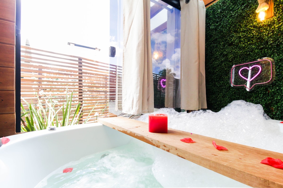 Cabaña romántica con hidromasaje y comodidades