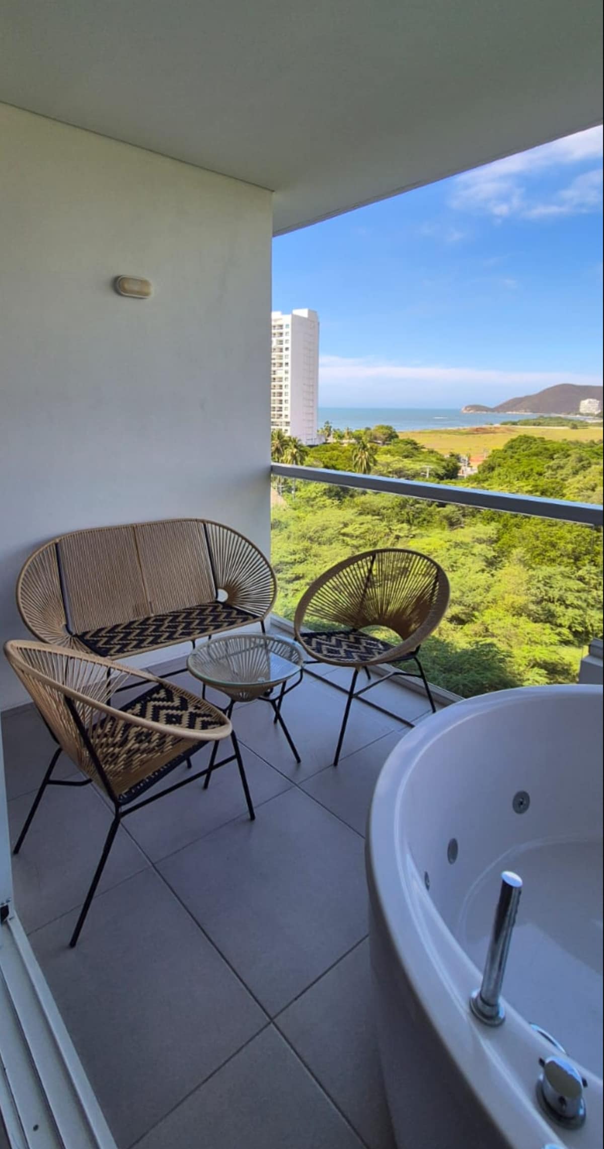 Disfruta un apartamento de lujo en la zona preferencial del Rodadero a tan sólo 15 minutos del aeropuerto internacional Simón Bolívar y a 10 minutos a pie del Rodadero, cuenta con salida privada a la playa, club de playa, zonas verdes con senderos ecológicos, terraza panorámica con zonas húmedas (Jacuzzis, bares, varias piscinas para adultos y para niños) entre otras amenidades como cancha de microfutbol, gimnasio, ping-pong, entre otras de estilo Resort para su disfrute.