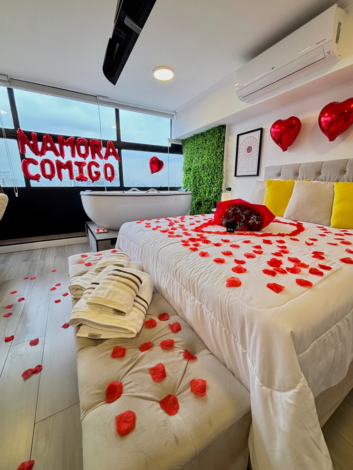 Vista do Mirante es un estudio lleno de encanto y comodidad para que las parejas disfruten de una experiencia única. Tiene una ubicación increíble en el centro histórico de SP, dentro del edificio que tiene una de las postales SP más importantes que es Sampa Sky. Con una vista impresionante, ya que está en el piso 27 y justo enfrente del valle de Anhangabaú. Harás hermosas fotos porque el espacio cuenta con decoración romántica, hermosas manchas decoradas, bañera con hidroterapia y cromoterapia.