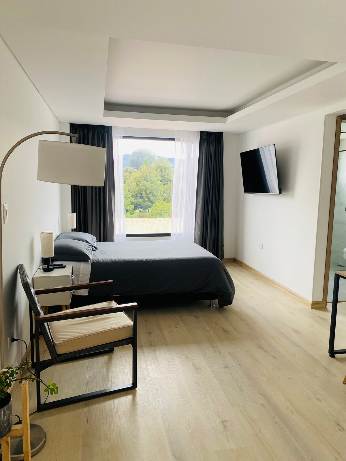 El apartamento se encuentra ubicado en frente de la Alcaldía Municipal y a pocos pasos del Parque Principal, a dos cuadras de la zona más representativa de restaurantes y bares de Zipaquirá. Está ubicado en el tercer piso con una vista privilegiada hacia la zona colonial y la catedral principal. Consta de una confortable habitación de una cama doble con baño privado, una amplia cocina, TV pantalla plana, televisión local por cable y Wi-Fi de alta velocidad.