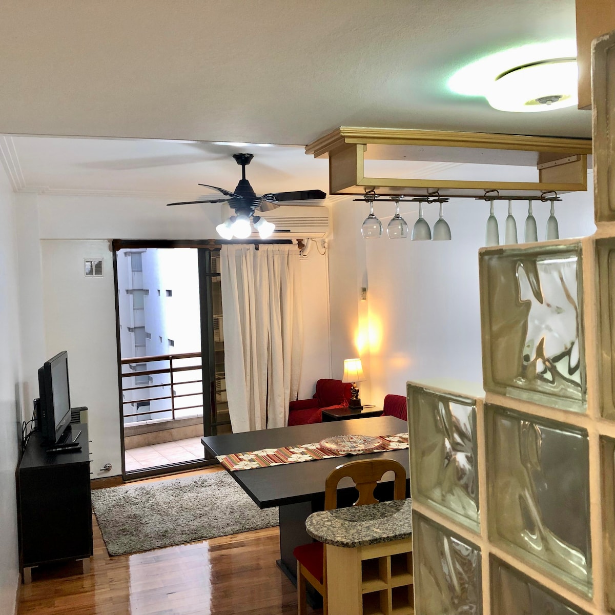 Ambiente con aire acondicionado y wi-fi, luminoso, seguro, tranquilo y con excelente ubicación en el barrio de Caballito. Ideal para parejas que viajan y desean conocer la ciudad. El barrio es muy seguro y el departamento esta situado a 50 mts de avenida Rivadavia, una de las principales. Asimismo, a 150 mts se encuentra la estación de metro mas cercana, ideal para moverse por todos los rincones turísticos de Buenos Aires (San Telmo, centro, Palermo, Recoleta, Abasto)