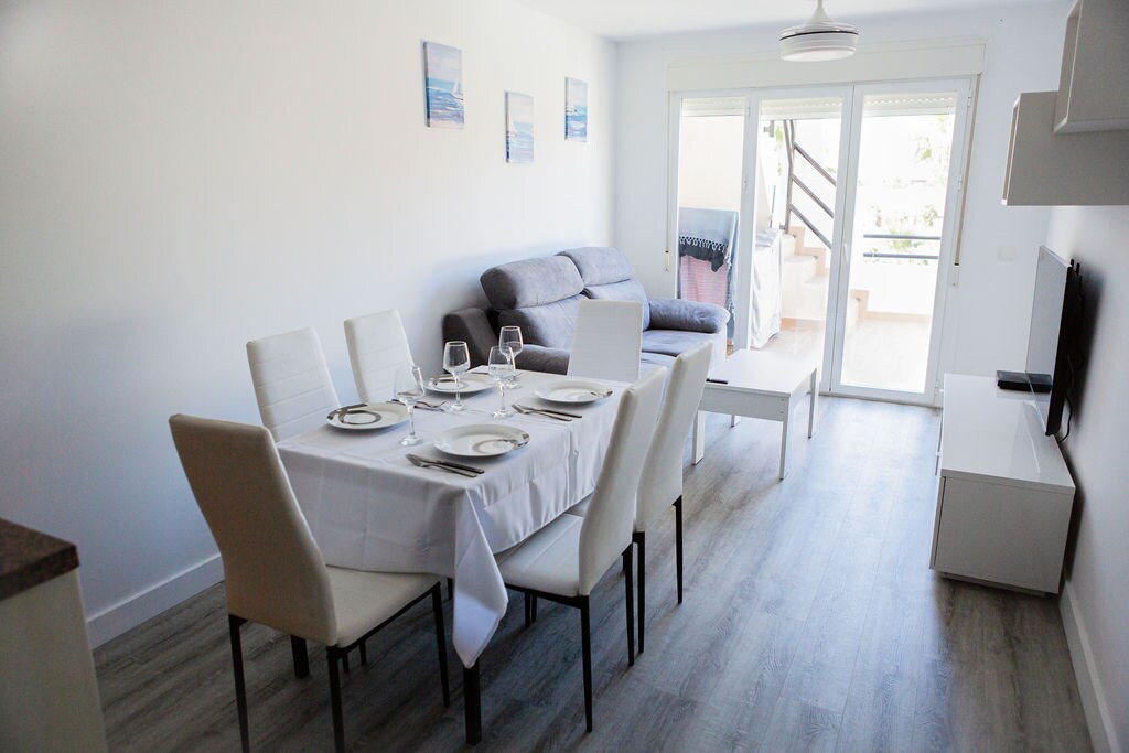 Bienvenido a nuestros exclusivos pisos en Carboneras, ¡junto al mar! → Ofrecemos una estancia inigualable. → Impresionantes amaneceres sobre el mar. → El sonido del mar durante toda la noche. → Aguas cristalinas. → Rodeado de palmeras. → Cada dormitorio tiene su propio cuarto de baño. → Smart TV grande con todos los servicios de streaming. → Amplia cocina.