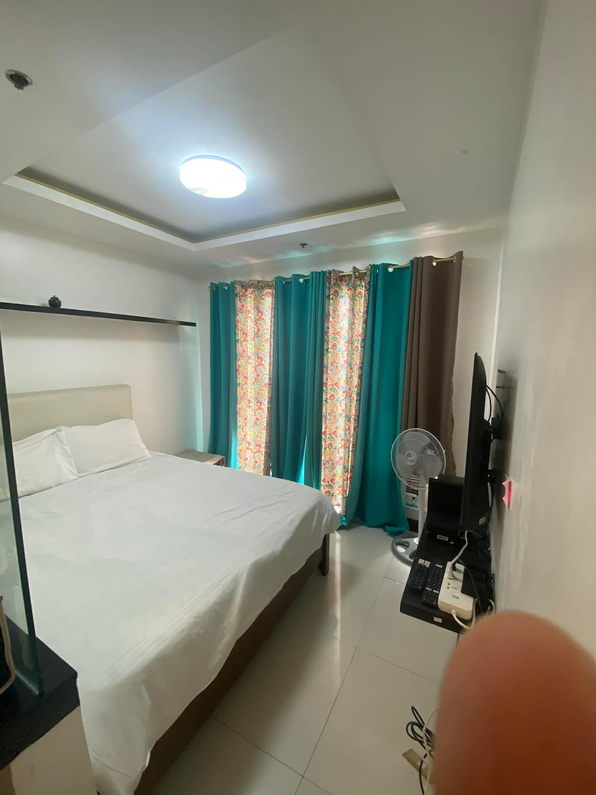 Diseñado cuidadosamente con un toque moderno, este acogedor estudio en el piso 43 ofrece comodidad y conveniencia para viajeros, parejas o trabajadores remotos. Disfruta de mañanas tranquilas y noches de descanso sobre el horizonte de la ciudad. • Cómoda cama tamaño queen con sábanas limpias. • Equipado con plancha y secador de pelo para tu comodidad. • Espacio limpio y acogedor para una estancia relajante. • Cerca de Robinsons Place, Intramuros y Luneta Park. • Ubicado justo al otro lado de la Embajada de los Estados Unidos en Manila.
