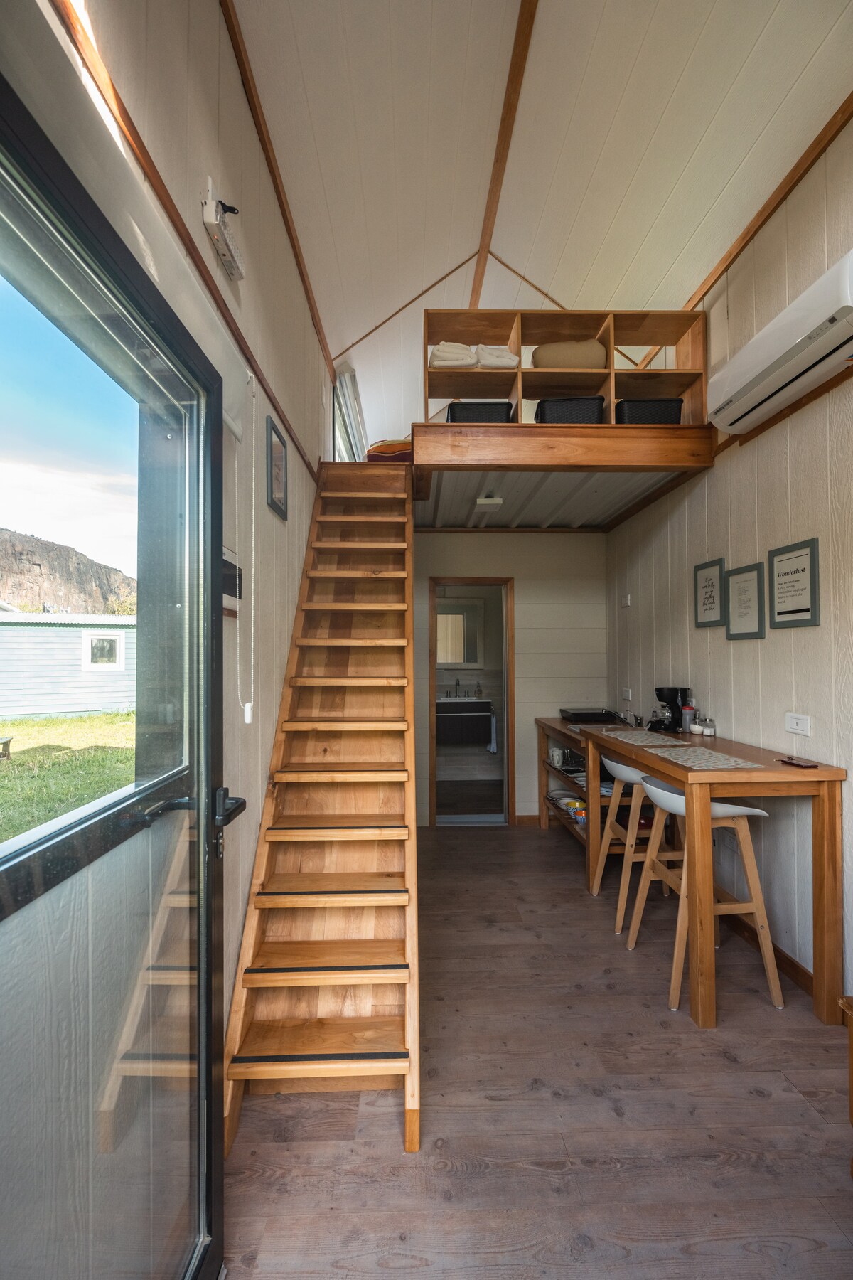 Bienvenidos a nuestro acogedora Tinyhouse, ubicada a sólo unos pasos de la entrada al sendero Fitz Roy. Rodeada de restaurantes, bares, una panadería y un supermercado, es la base perfecta para su aventura Patagónica. En el interior, encontrará una cómoda cama queen, split frio/calor y una cocina totalmente equipada para cocinar deliciosas comidas después de un día en los senderos. El baño está equipado con amenities. ¡Reserve ahora y experimente la belleza de la Patagonia!