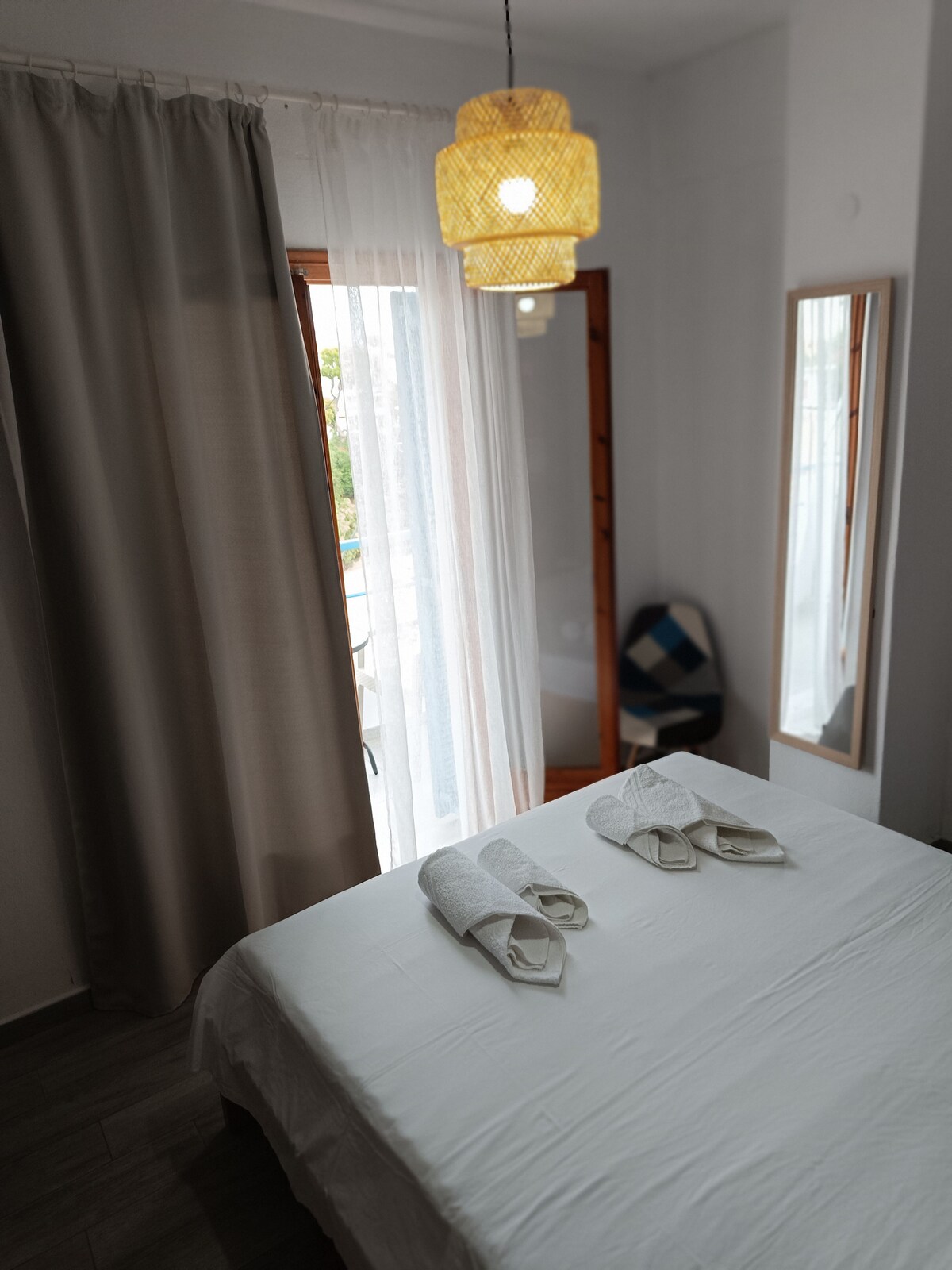 Ο χώρος είναι ιδανικός για ζευγάρια ή παρέα δύο ατόμων, όπου θέλουν να περάσουν τις διακοπές τους ξέγνοιαστα. Η θέα είναι απλά μοναδική καθώς το διαμέρισμα βρίσκεται στο υψηλότερο σημείο του λιμανιού στο κέντρο του νησιού. Οι αποστάσεις κοντινές προς όλες τις παραλίες είτε με τα πόδια είτε με κάποιο όχημα. Οι επισκέπτες έχουν άμεση πρόσβαση σε σούπερ μάρκετ, φούρνο, ιατρικό κέντρο, στάση λεωφορείου και ταξί καθώς και σε εστιατόρια, καφετέριες και μπαρ. Η διαμονή σίγουρα θα σας μείνει αξέχαστη!!