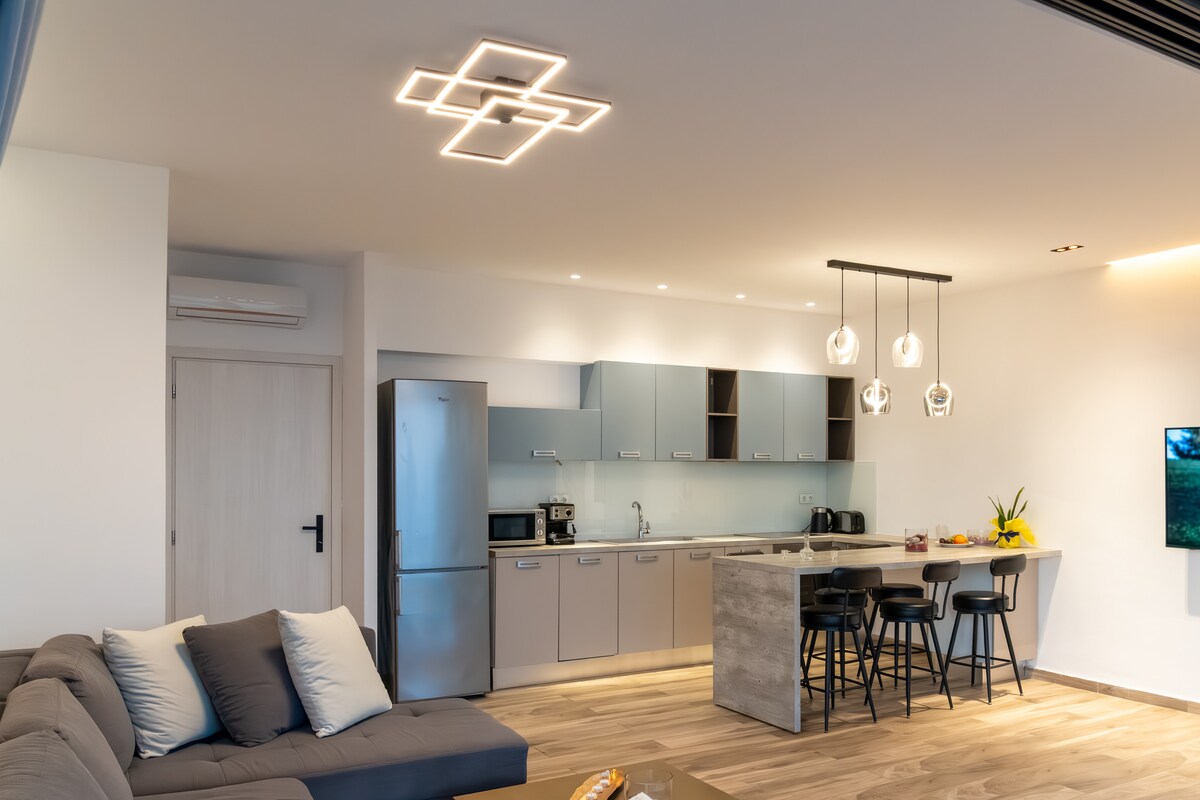 Bienvenido a Kyanon House and Apartment, un apartamento pintoresco y lujoso de 2 dormitorios y 2 baños con piscina infinita privada e hidromasaje y vistas impresionantes al mar de Creta y a la ciudad de La Canea. A solo minutos del centro de la ciudad y de las playas de la zona. Los huéspedes de todos los orígenes son bienvenidos, este apartamento es ideal para parejas y familias durante todo el año que quieran vacacionar con comodidad, lujo y privacidad.