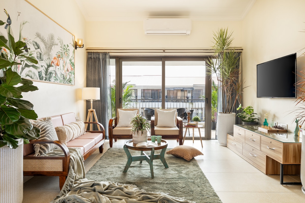 At Ananta Collective, Experience North Goa at its finest in this beautifully designed 1BHK luxury apartment nestled in the serene neighborhood of Nerul, just minutes away from Candolim, Coco, and SinQ Beach. Step into a world of modern interiors, elegant finishes, and thoughtful details that blend comfort with style. The apartment features a spacious living area, a fully equipped kitchen, and a cozy bedroom with premium bedding — perfect for couples or small families seeking a relaxing getaway.