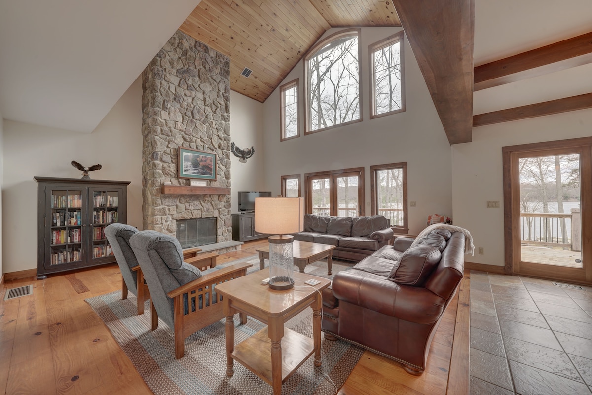 Acogedora casa de campo frente al lago en el precioso House Pond. A solo 3 minutos del embarcadero del lago Wallenpaupack y a 5 minutos de tiendas, restaurantes, bares, excursiones en barco, fantásticas rutas de senderismo y mucho más. En este tranquilo refugio recién renovado (2022), puedes disfrutar de una gran pesca, increíbles amaneceres y atardeceres, águilas calvas, garzas azules, ciervos, varias aves y otra vida silvestre. Relájate y cena en la terraza o en el patio de losas junto al lago mientras disfrutas de las brasas crepitantes en la chimenea.