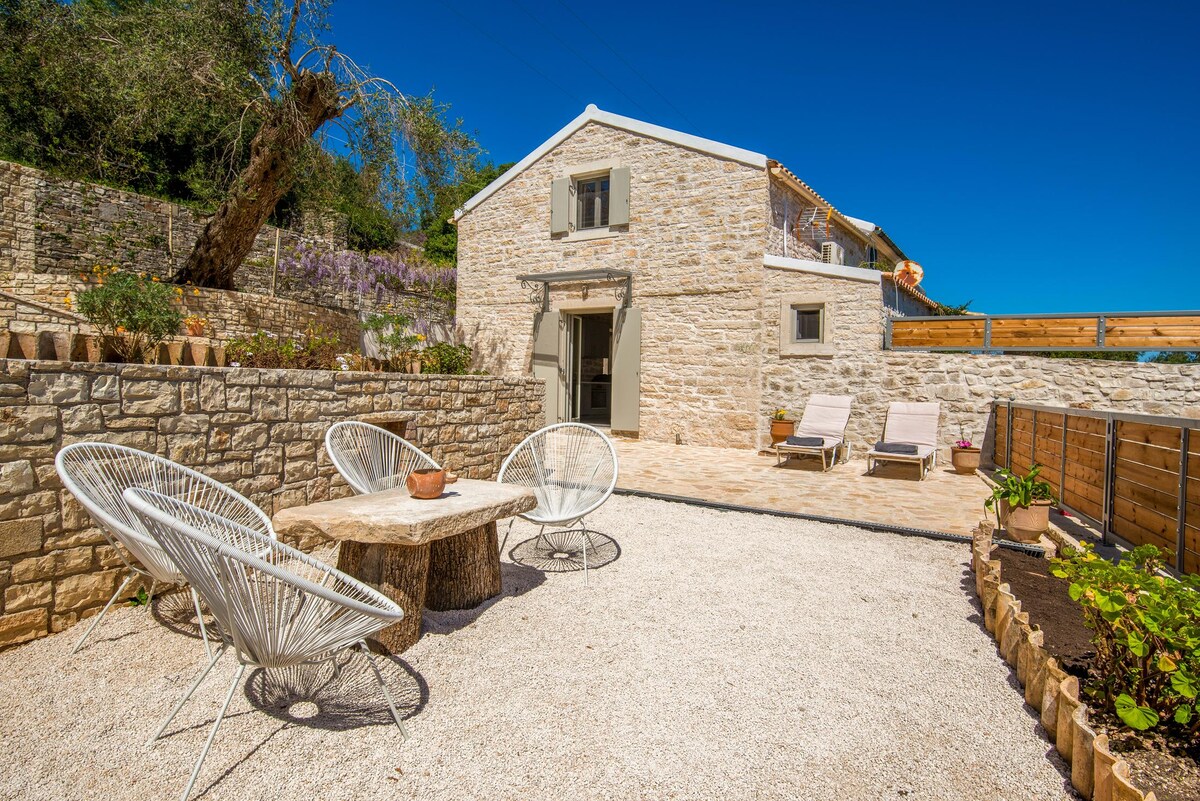Una acogedora casa de piedra totalmente equipada. Ha sido renovada con gran atención a los detalles, conservando el ambiente tradicional. Ubicada en un hermoso y tranquilo pueblo en el centro de la isla de Paxos y es ideal para personas que quieran visitar todos los pueblos alrededor de la isla. Está rodeada de un hermoso entorno natural, lleno de olivos y flores que ofrecen total aislamiento, tranquilidad y privacidad.