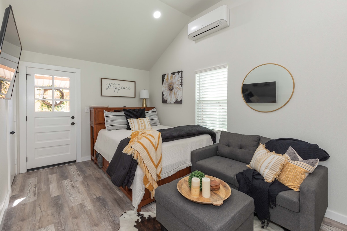 Keep it simple at this peaceful and centrally-located place. Charming and quiet private backyard casita offers full size appliances and washer/dryer in the unit. Self care is spa-like in the extra large, clean bathroom. Sleep comes easy in the cozy king size bed. If you need extra bed space, the couch makes an additional full size bed. We can’t wait for you to experience this sweet little home away from home.