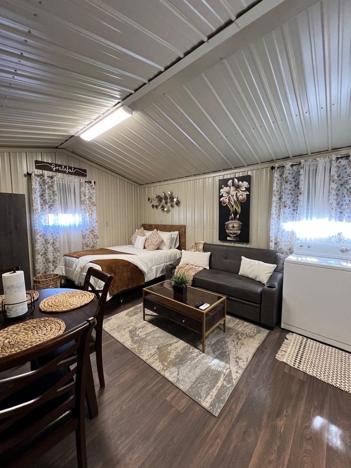 Bed and breakfast único (comida de perros grandes incluida) 800 pies cuadrados recién remodelado en 2024. Grandes ventajas como una MESA DE BILLAR y cafetera Keruig , hay una FREIDORA/MICROONDAS de AIRE de media cocina. Refrigerador Y congelador , WAlK EN EL ARMARIO, TV DE 65pulgadas con SONIDO ENVOLVENTE, TV DE RADIO XM Y APP DE PELÍCULAS CAMA KING y SOFÁ CAMA Colchón desplegable disponible bajo pedido. Este es realmente un BNB único. ¡Voy a alimentarte a ti y a tu búsqueda con una deliciosa comida fresca que anhelarás durante mucho tiempo!