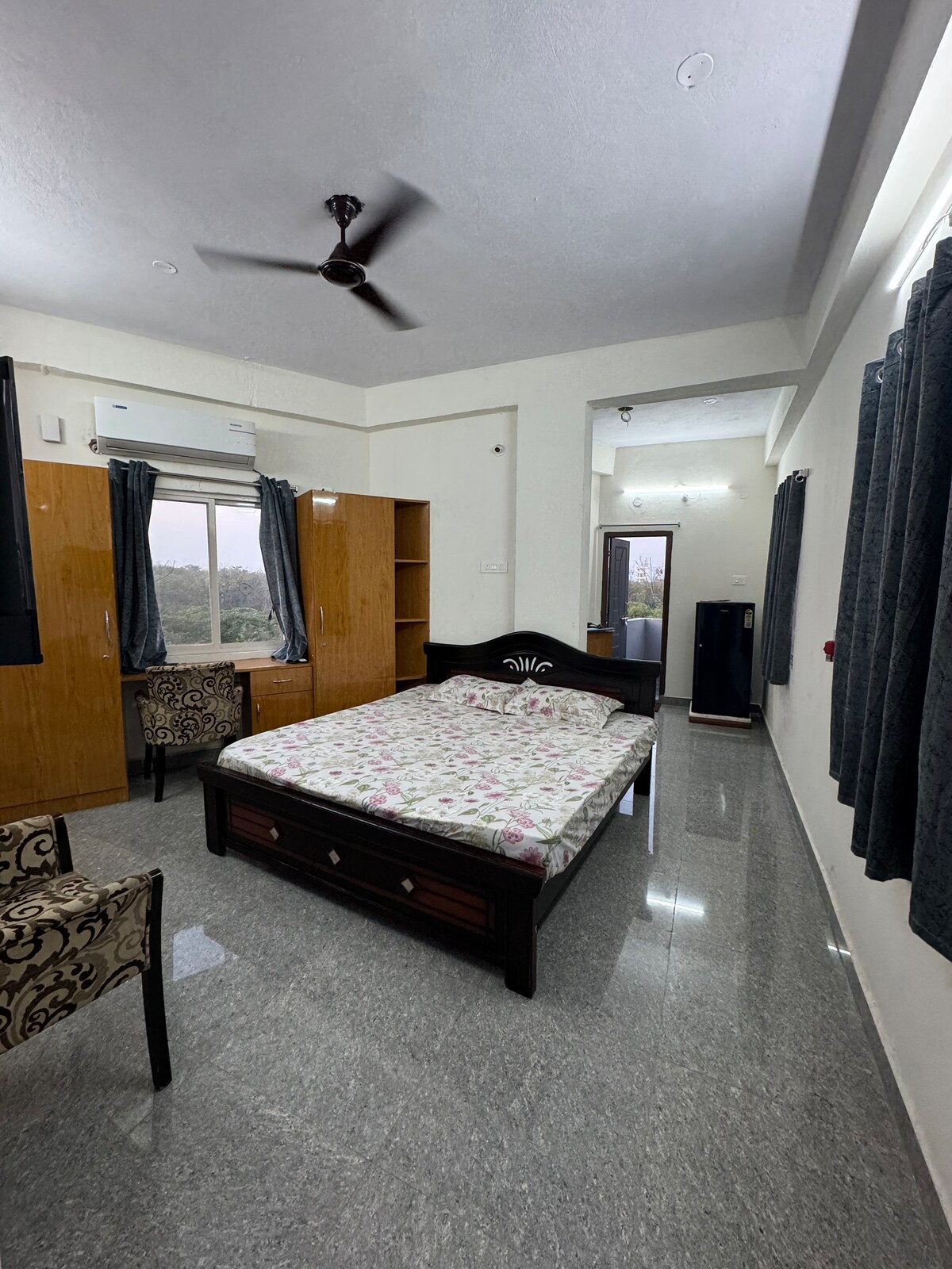 Un estudio cuidadosamente diseñado por mí, que ofrece pura elegancia y funcionalidad, lo que te hace sentir como en casa y cómodo. Guardia masculina/mujer las 24 horas A poca distancia a pie: Restaurantes. Paradas de autobús Solo estás: 15 minutos - HYD Centro de la ciudad A 19 minutos del aeropuerto (RGIA). 26 minutos - Hitech City / Distrito financiero / Embajada de EE. UU. Tu estadía incluye: Estacionamiento Snacks Bebidas frías/calientes Toallas Baño privado Géiser acuático Sin chinches Servicio DE limpieza Refrigerador Hervidor eléctrico. Aire acondicionado Respaldo de electricidad las 24 horas