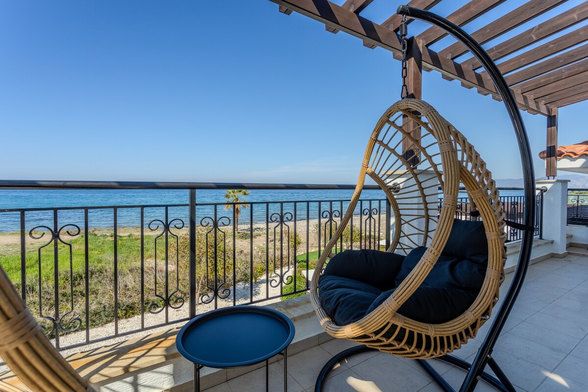 nuestra hermosa villa de 3 habitaciones está situada directamente frente al mar en Kissonerga. El centro del pueblo y algunas tiendas y restaurantes están a poca distancia a pie. Hay una gran sala de estar/comedor de planta abierta con cocina en la planta baja. Los grandes ventanales permiten ver la terraza, la piscina y el mar. Hay dos dormitorios con cada baño en la planta baja y otro dormitorio principal con baño arriba. En el exterior encontrarás una piscina privada y un césped que baja al mar.