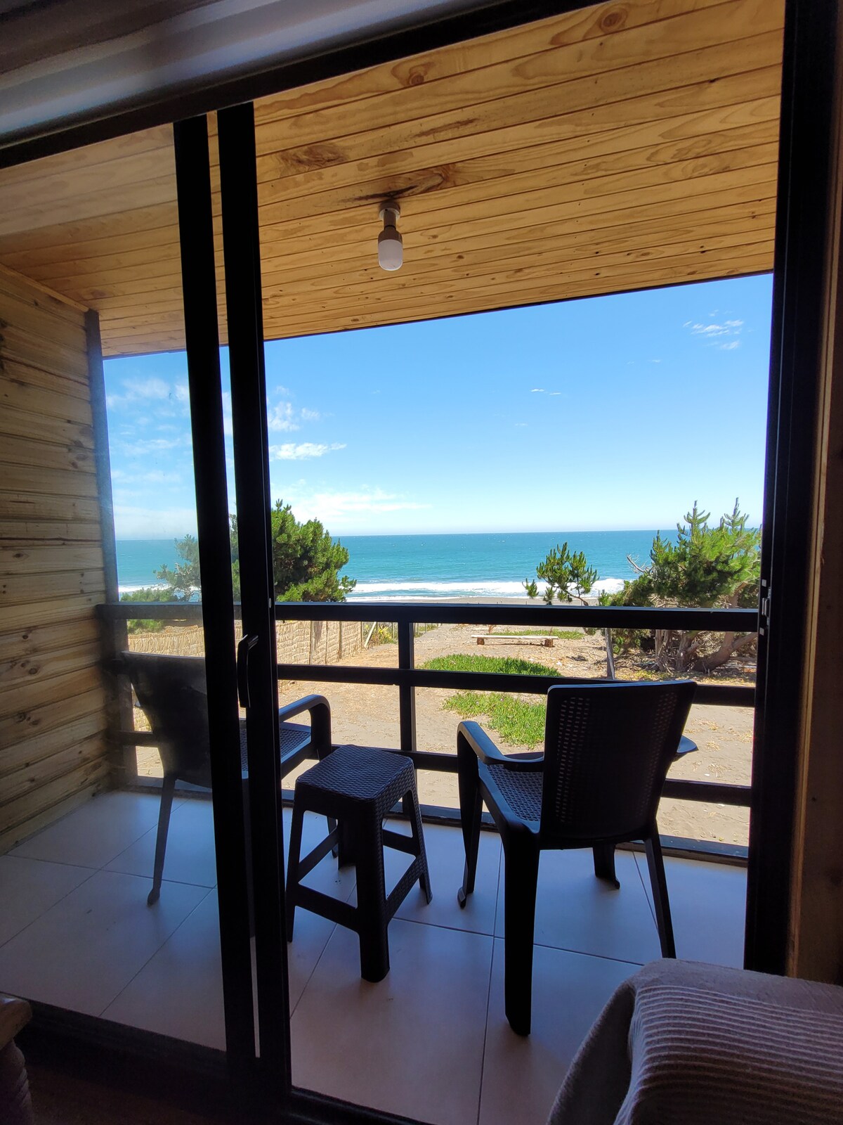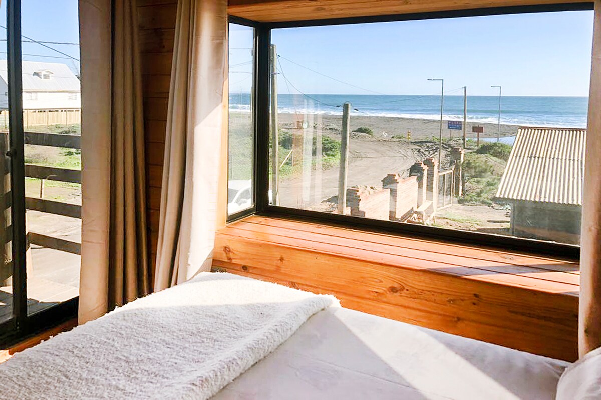 Experimenta la costa del Maule como nunca antes. Primera línea frente al mar con una fachada totalmente vidriada con cristales termopanel de piso a cielo que hacen de la vista un espectáculo las 24 horas. El loft cuenta con 1 cama matrimonial. Terraza protegida del viento sur, cocina totalmente equipada y baño de piedra y madera. 10 kms al sur de Curanipe, a 300 metros del camino principal y a pasos de la playa.