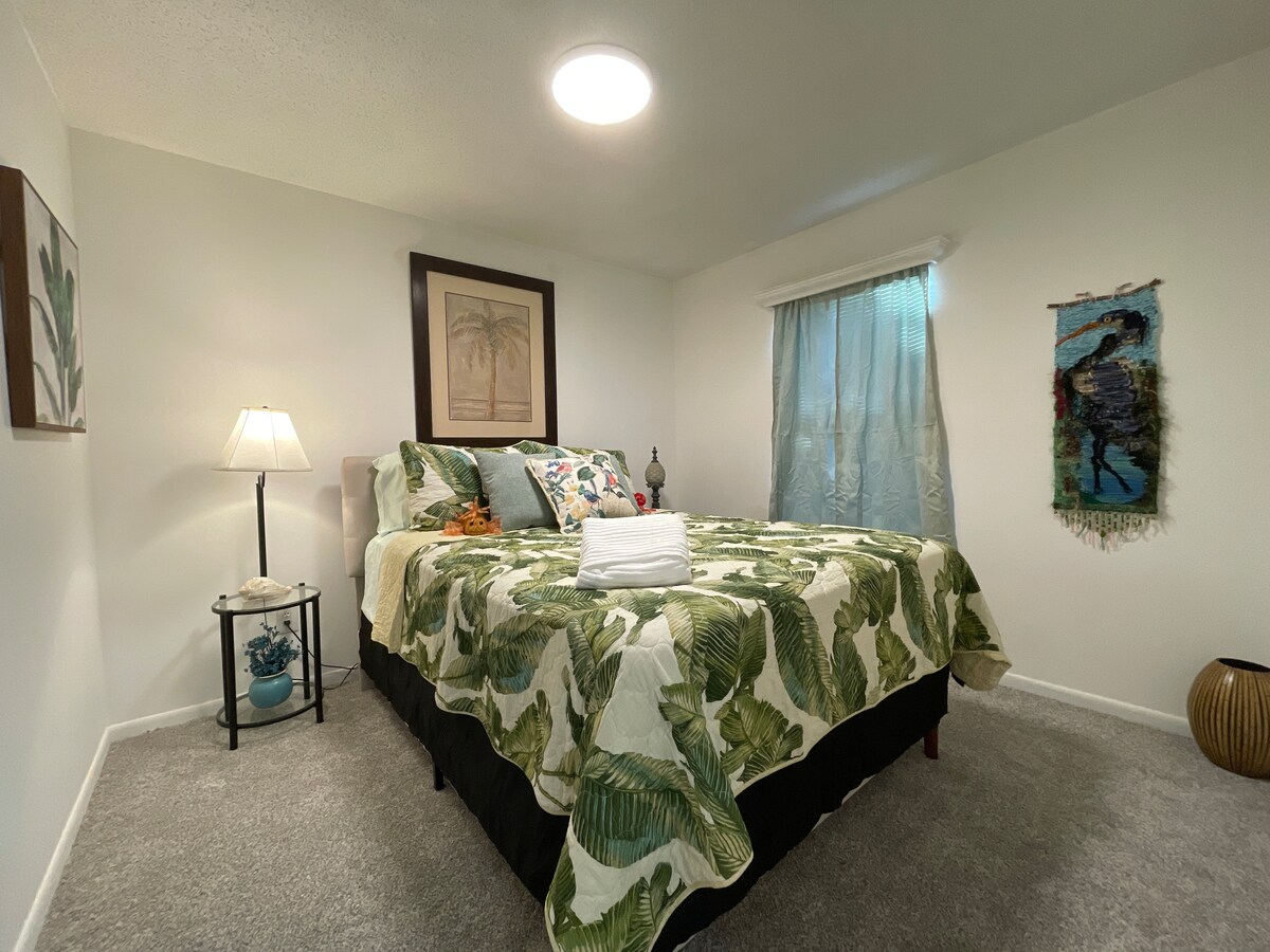 Relax and enjoy your stay in this newly renovated 1BR/1BA condo, furnished with vibrant coastal decor. Situated in the exclusive Purple Parrot gated resort, this tropical paradise offers a carefree island lifestyle. Just minutes from beautiful beaches, marinas, and top restaurants, you'll find everything you need for a perfect getaway! Our unit is just steps from the expansive outdoor pool area, featuring a grotto waterfall, a relaxing island hot tub, and plenty of sunbathing space.