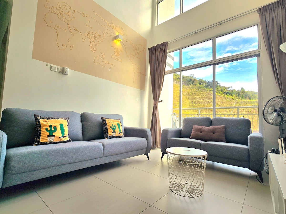 Ubicado en la brumosa Golden Hills, donde se encuentra el famoso mercado nocturno, este ático dúplex se encuentra en el piso más alto que ofrece hermosos paisajes de montaña. Los 3 dormitorios vienen con baño adjunto, puede alojar cómodamente hasta 10 personas. Con más de 60 plantas llenando la pared y la esquina, este lugar está configurado para acercarte a la naturaleza. Golden Hills se encuentra entre Tanah Rata y Brinchang, cerca de atracciones turísticas como Boh Tea Estate, Kea Farm Market y Strawberry Farm.