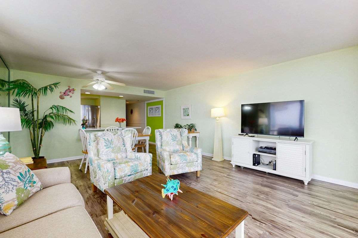 1BR with Gulf views, beach access, pool, & hot tub