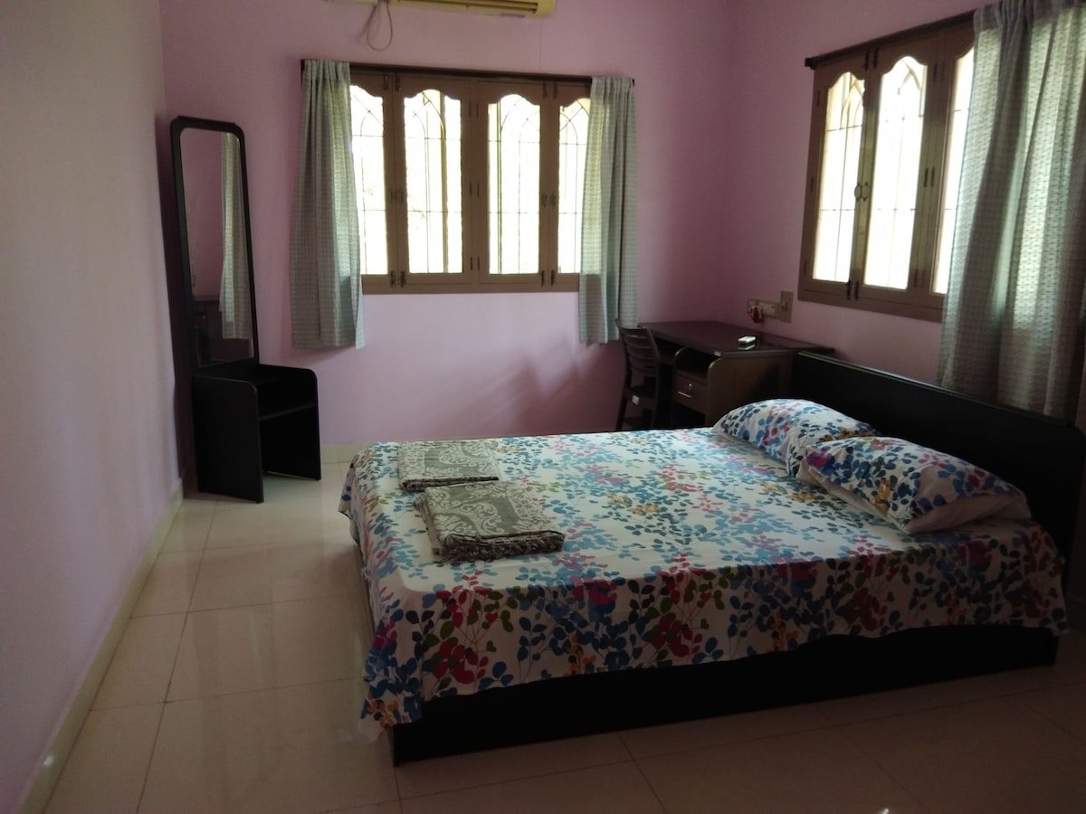 A 5 minutos en auto de Serenity Beach y a poca distancia de los restaurantes más geniales. No se permiten fiestas ruidosas. Es una pintoresca comunidad residencial internacional aurovilliana. Acogedora villa de 2 dormitorios y cocina con una piscina de tamaño completo. La propiedad se encuentra en un bosque de anacardos en medio de la naturaleza. Una estadía que nunca podrás olvidar. El huésped tiene acceso a toda la propiedad. Reglas: Horario de la piscina/horas de silencio: 8:00 a. m. a 8:00 p. m. No hay vehículos de dos ruedas Prohibido hacer fiestas ruidosas.