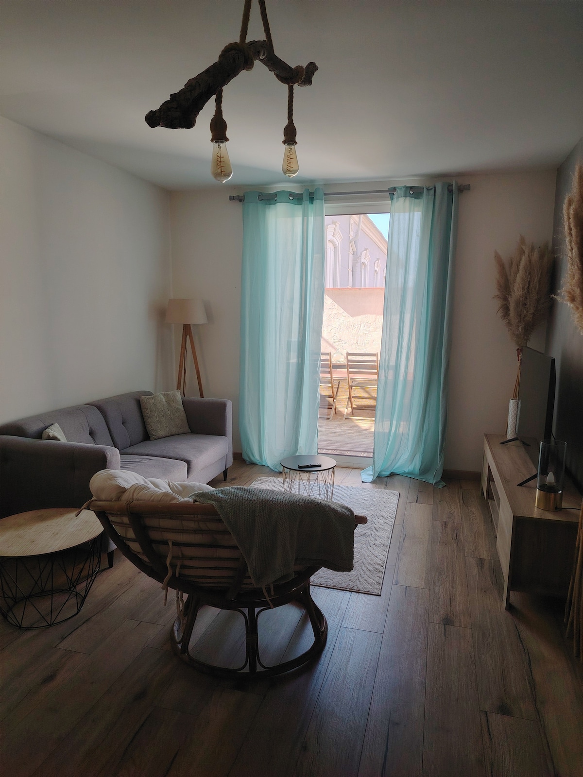 Con plaza de aparcamiento privado en frente del apartamento y cerca del centro de la ciudad, este apartamento le seducirá con su ambiente acogedor y su estilo bohemio. Situado en la planta baja totalmente independiente de un pequeño colectivo de 3 viviendas , se beneficiará de dos hermosas habitaciones con acceso directo al jardín amueblado con muebles de jardín. Cocina equipada. A solo 10 minutos a pie del centro de la ciudad, y a 15 minutos de las primeras playas y a 20 metros de España . Situado a 100 metros de la avenida Kennedy y de los comercios.