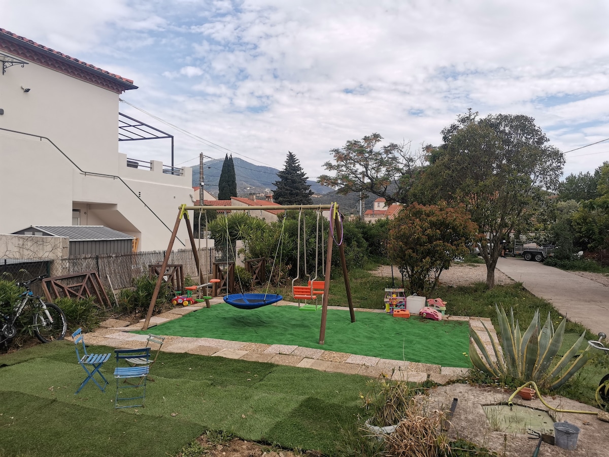 Ofrezco, en el centro de un pueblo colorido con acento catalán, un apartamento con decoración elegante para pasar unas vacaciones cerca del mar. Está cerca de actividades como el pequeño tren amarillo, tiendas, estación de tren SNCF, autobuses, lugar de estacionamiento, etc. Hemos equipado este apartamento para que pueda pasar unas buenas vacaciones. Hemos equipado la terraza para que sus aperitivos sean agradables, todas las habitaciones tienen aire acondicionado e incluso tenemos una cafetera esperándole.