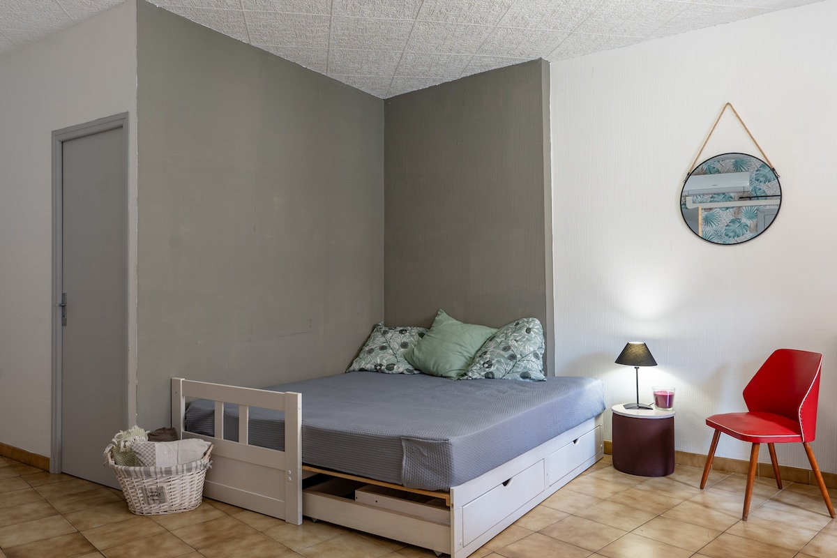 Este tranquilo alojamiento ofrece una estancia relajante para 2 personas . Situado en el centro de la ciudad de Céret, en un callejón sin salida tranquilo y en un entorno apacible. Con una plaza de aparcamiento delante del estudio, se puede hacer de todo a pie una vez que el coche esté aparcado. Tiendas, restaurantes, museos, mercados de Céret. Puedo hacerte un lugar seguro para 2 bicicletas si me lo pides.