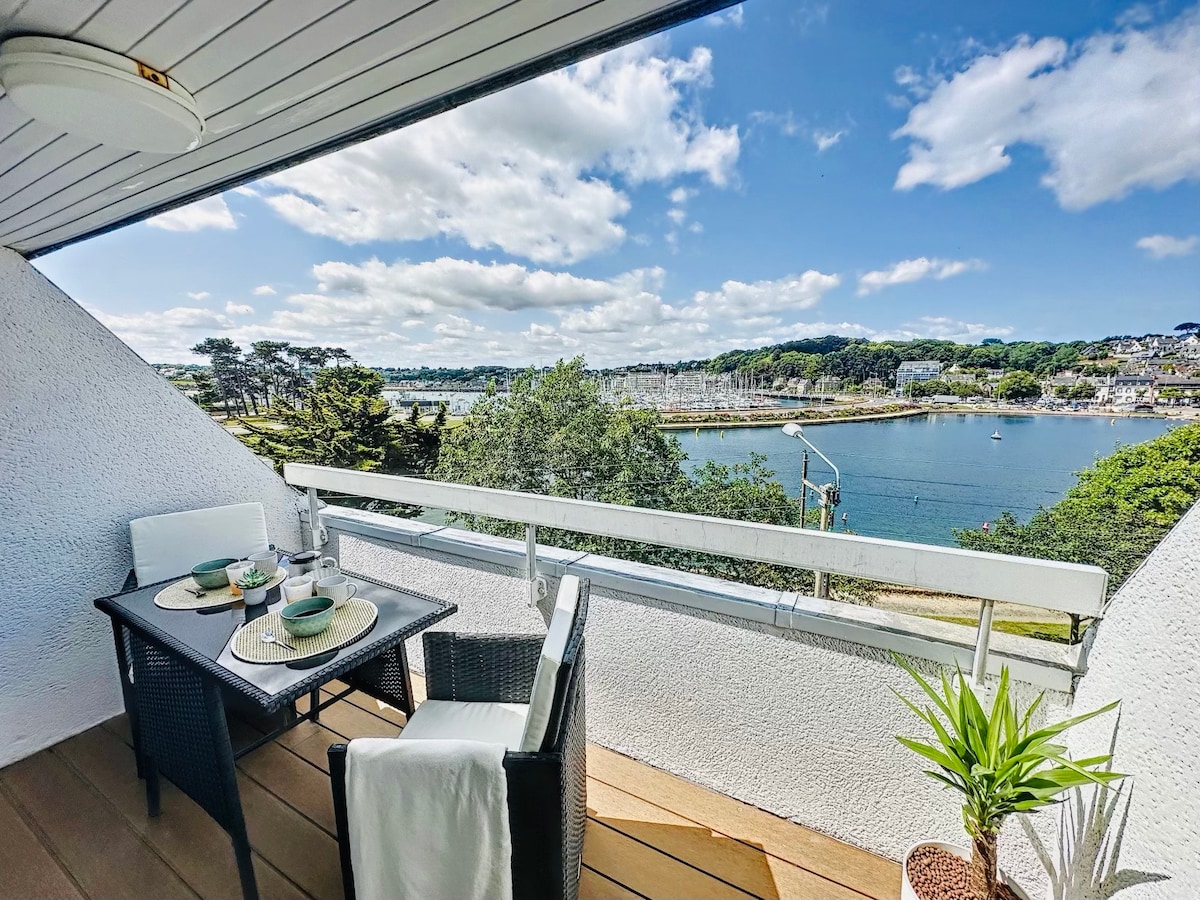Wide angle on the sea for this exceptional apartment with breathtaking views located on the 1st floor of a former seaside hotel overlooking the beach of Trestraou and the Archipelago of the 7 islands. A little paradise under the palm trees! Private access to the beach and direct to the coastal path If your dates are already reserved, we offer you an apartment on the 5th floor / le5emecielperros on this site Please exchange with the "contact the host" tab for more info A setting out of the world!