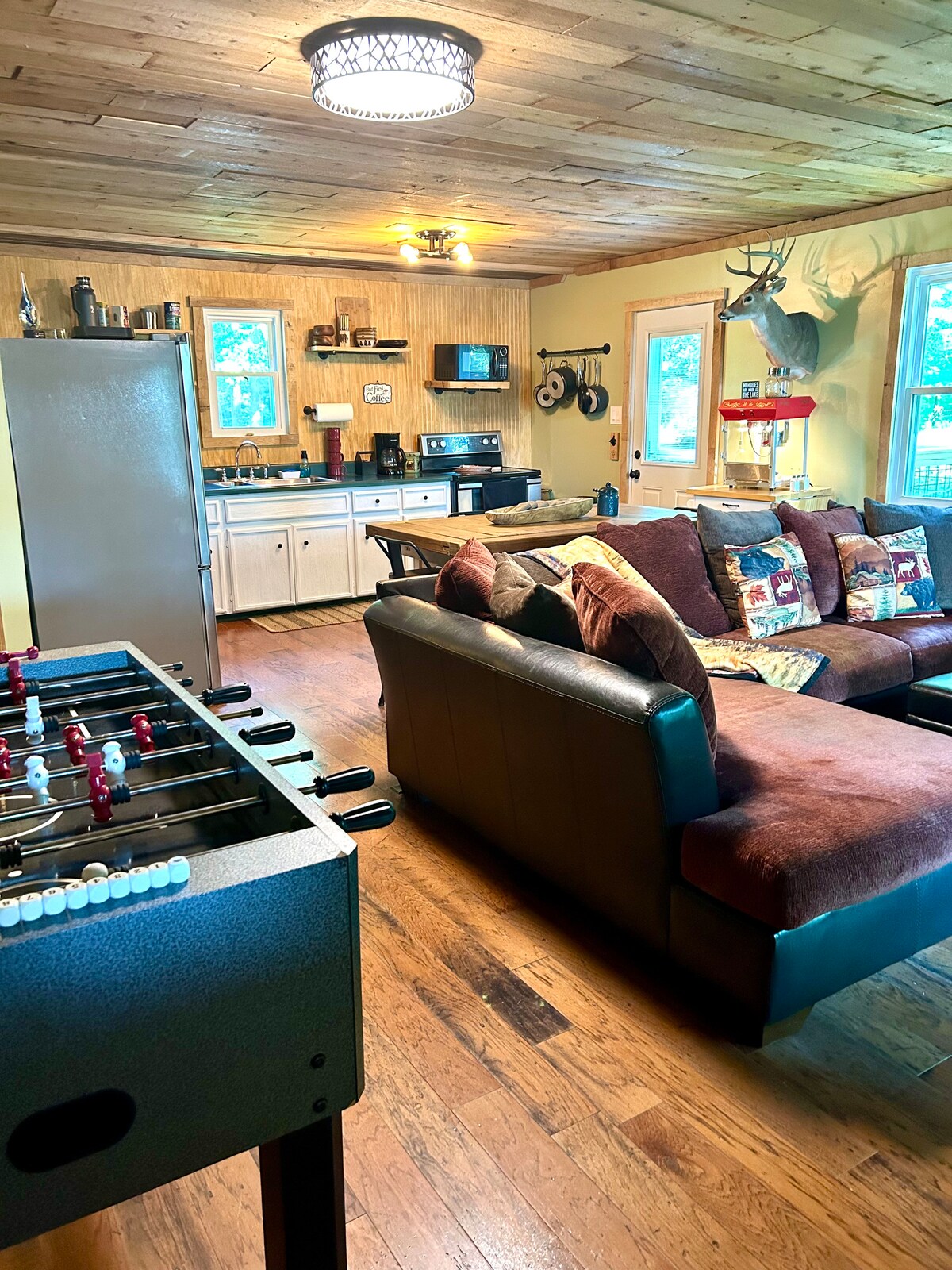 ¡Hermosa casa junto al lago en el lago Tim's Ford! Paseo corto o paseo en carrito de golf hasta Blue Gill Grill y Holiday Landing Marina. ¡Aparcamiento para barcos en la entrada durante tu estancia! Primera planta: dormitorio principal con baño completo, comedor, sala de estar, cocina (totalmente abastecida con especias básicas y utensilios de cocina). Patio exterior con chimenea y asientos. Segundo piso: dormitorio 2 con cama tamaño king. Dormitorio 3: cama tamaño queen, espacio loft, sofá Sofá cama queen. * No se permite fumar. * Máximo 10 huéspedes *Cámara de seguridad en la puerta principal*