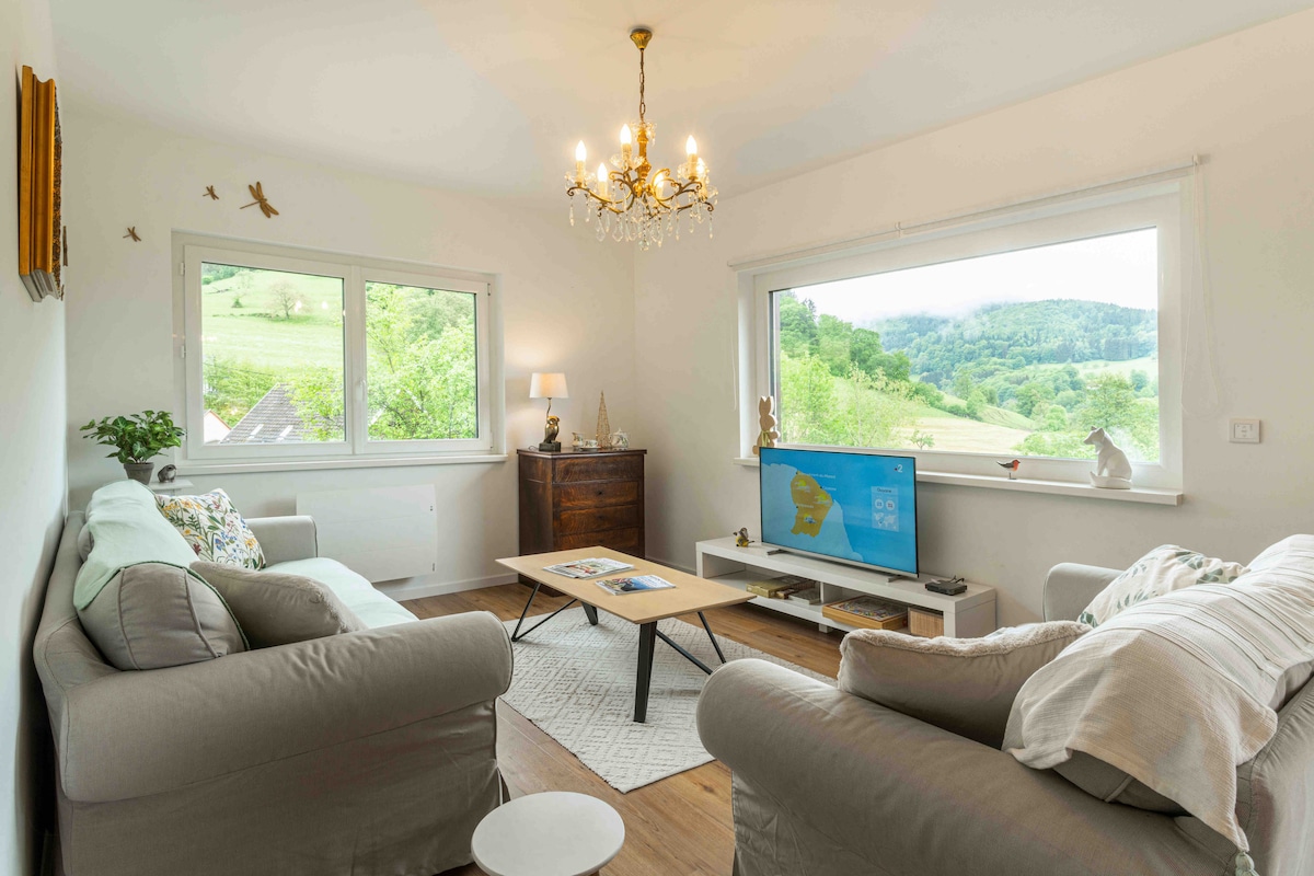 Casa de campo moderna con aire acondicionado, en la planta baja de una casa de campo muy bonita en la montaña, cerca de todos los servicios. Entrada privada, estacionamiento, +acceso a una zona de relajación JACUZZI abierta todo el año y MINI PISCINA abierta de mayo a septiembre. Capacidad de la casa: 2 personas ubicación: pueblo en el valle de Munster , cerca del viñedo alsaciano , y ciudades turísticas como COLMAR/ESTRASBURGO/ MULHOUSE , varios lagos de montaña, pistas de esquí, rutas de senderismo