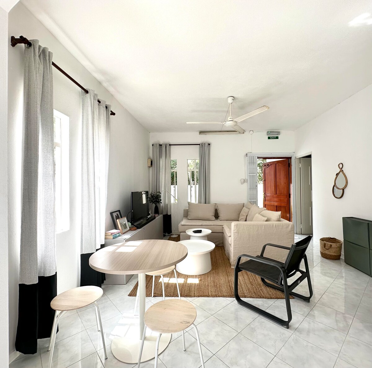 Departamento de un dormitorio en Cap Malheureux para viajeros que buscan un espacio acogedor y tranquilo. A 15 minutos a pie de la playa de Anse la Raie. Departamento privado sin espacios compartidos, excepto la puerta de entrada, que es una puerta común. El departamento está equipado con baño, cocina, sala de estar y zona exterior privada. El apartamento forma parte de nuestra casa, pero sin lugares compartidos. Tenemos un pequeño miembro de la familia al que le encanta decir “Hola” y dar la bienvenida a nuestros huéspedes cuando llegan con sus ladridos :)