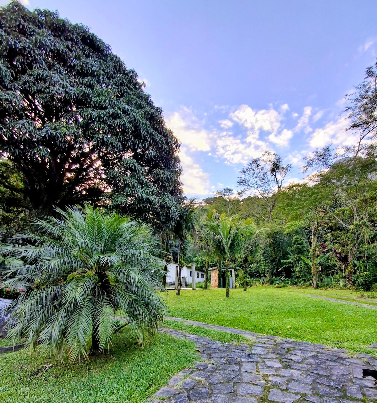 Quinta di Bali is a vacation home in Secretário, Petrópolis. For up to 10 guests in 5 suites, featuring a cozy and spacious living room with fireplace, integrated kitchen, large social area, and plenty of greenery. Enjoy the private pool with volcanic stones and mountain views. The location is strategic, with easy access to wineries, the sacrum Historical Museum of Tiradentes, water falls, a cheese dairy factory, a jam factory, and charming restaurants. Perfect for families and groups.