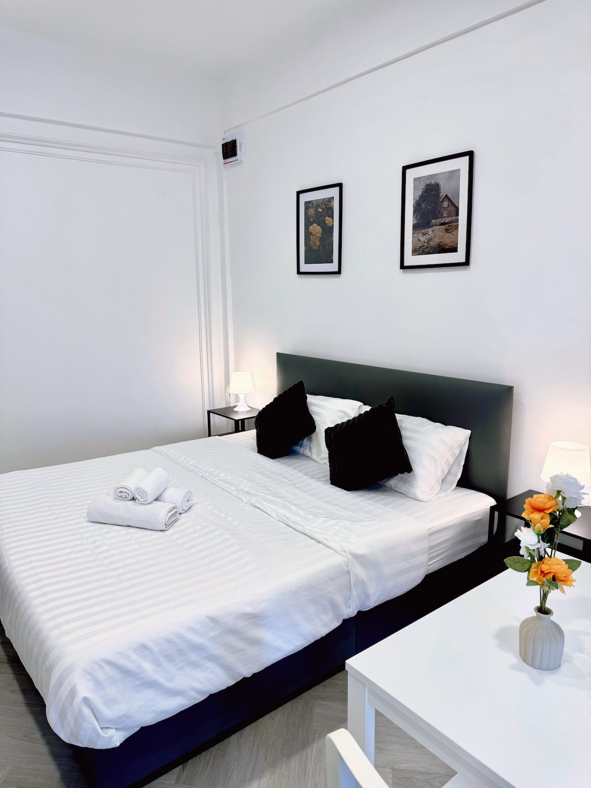 Un espacioso apartamento de 1 dormitorio con vistas a la naturaleza, una bañera de lujo, un masajeador de pies, una acogedora cocina y comedor, y desayuno casero de estilo tailandés de cortesía entregado en tu habitación la primera mañana. *La tarifa de la habitación es para 2 huéspedes. Cargo adicional por huésped hasta un máximo de 4. Recogida gratuita en el aeropuerto con una estancia de 2 noches o más. (*El desayuno y la recogida en el aeropuerto no se proporcionan con la tarifa de habitación con descuento). Situado en el centro, junto al monumento a la Victoria, por lo que es cómodo para ir a cualquier lugar en BTS, Grab taxi/coche.