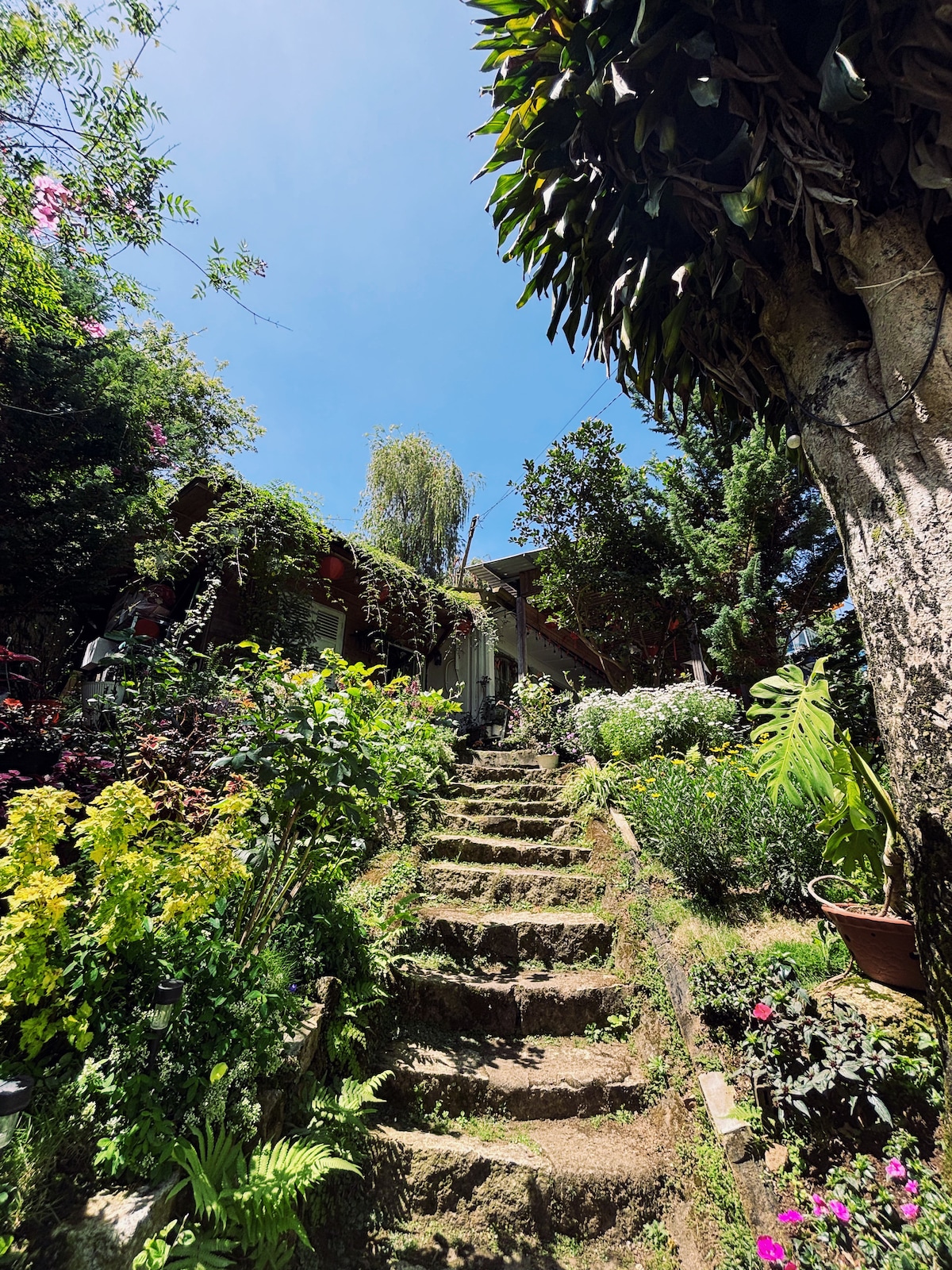 The wooden house is located in a lovely garden beside a stream closed King Palace 2 hill. It's in the heart of Dalat, less than 1km from the city Square, harmony with nature and the sound of frogs and streams at night. Enjoy a cup of coffee under sunlight in the morning, watch the koi fish in the ponds, pick some fresh vegetables for lunch, kick off an outdoor BBQ for evening, or simply lay back by the fireplace with your wine =). What a life!