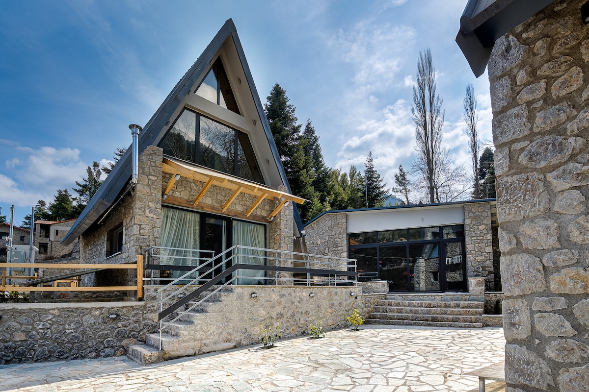 Una casa de piedra mágica con chimenea y una maravillosa terraza. Ideal para una pareja o un grupo de amigos. La gran terraza ofrece increíbles vistas del monte Parnaso, creando el escenario perfecto para momentos románticos e inolvidables. Disfruta de la calidez de la chimenea en las frías noches de invierno y relájate en el hermoso patio con aire fresco durante el verano. Esta casa combina la arquitectura tradicional griega con todas las comodidades modernas, que te ofrece relajación en un paisaje pintoresco.