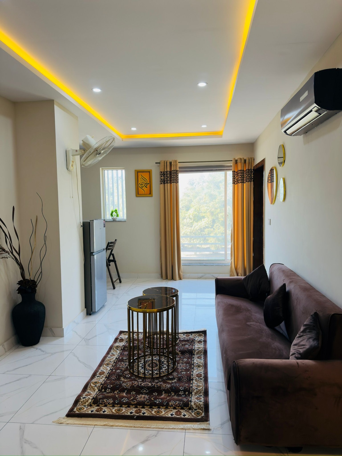 ¡Te damos la bienvenida a tu acogedor retiro! El apartamento más seguro y tranquilo de BHK en Bahria Town Lahore Ideal para parejas, familias, aventuras solitarias o viajeros de negocios. En el interior, encontrarás una sala de estar bien equipada, una cocina totalmente equipada y un acogedor dormitorio. Con comodidades como wifi, aire acondicionado, TV totalmente inteligente y ventilador de pared. Ropa de cama y toallas limpias. Disfruta de la comodidad de estar cerca de todos los restaurantes y servicios a poca distancia.