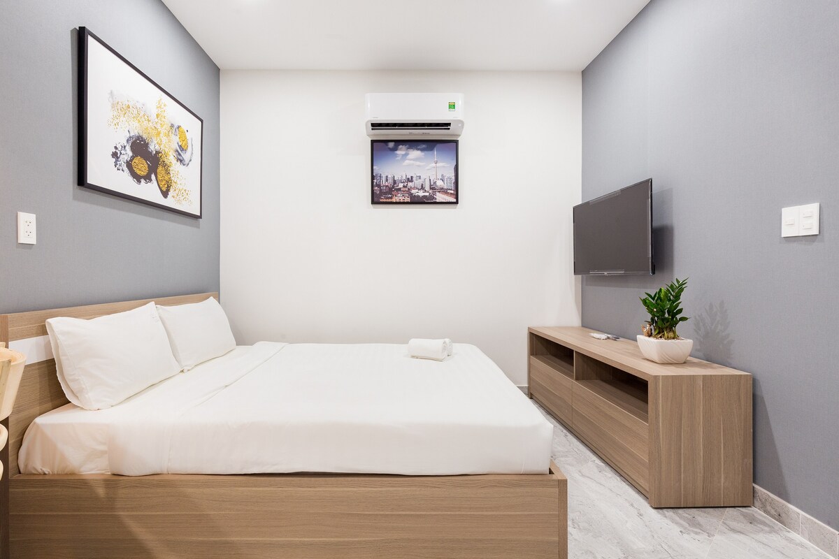 【Urban Oasis】Luxury Studio in Ho Chi Minh CBD | 45㎡ Panoramic View | 5-Min Lifestyle Hub 🏙️ Highlights: • Prime location: 2min walk to cafes/restaurants/convenience stores, 5min to supermarket, 600m to Pink Church • Premium living: Floor-to-ceiling windows, Samsung Frame TV, Emma mattress, smart lock + 24/7 security • Work-ready: 200Mbps fiber, 1.5m workspace • Perks: Free motorbike parking + bi-weekly cleaning (long-stay only) 🔑 Smart check-in: APP remote access + keybox